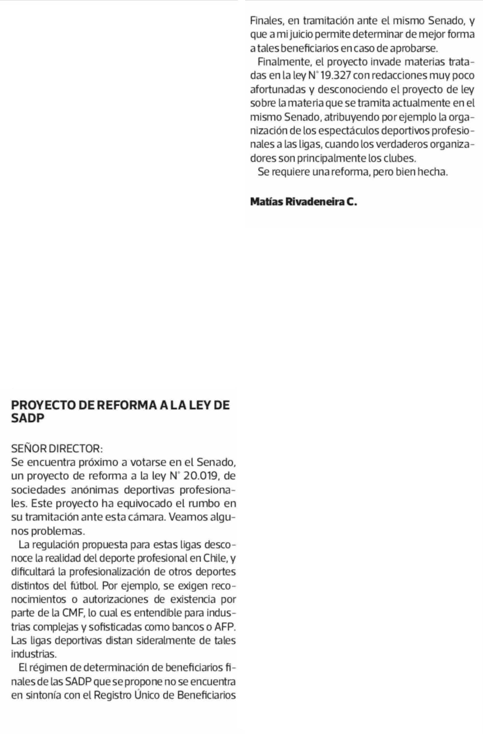 Título: CARTAS: PROYECTO DE REFORMA A LA LEY DE SADP