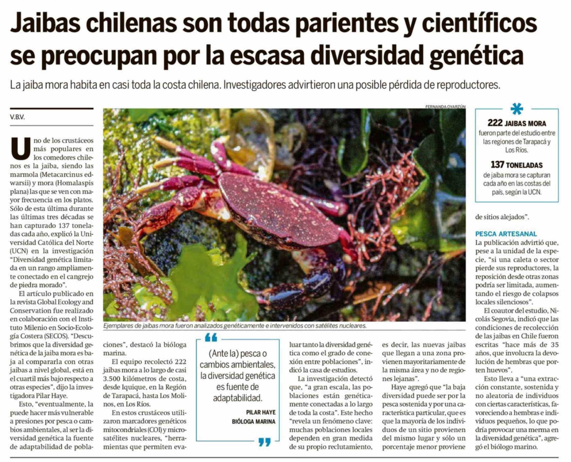 Título: Jaibas chilenas son todas parientes y científicos se preocupan por la escasa diversidad genética