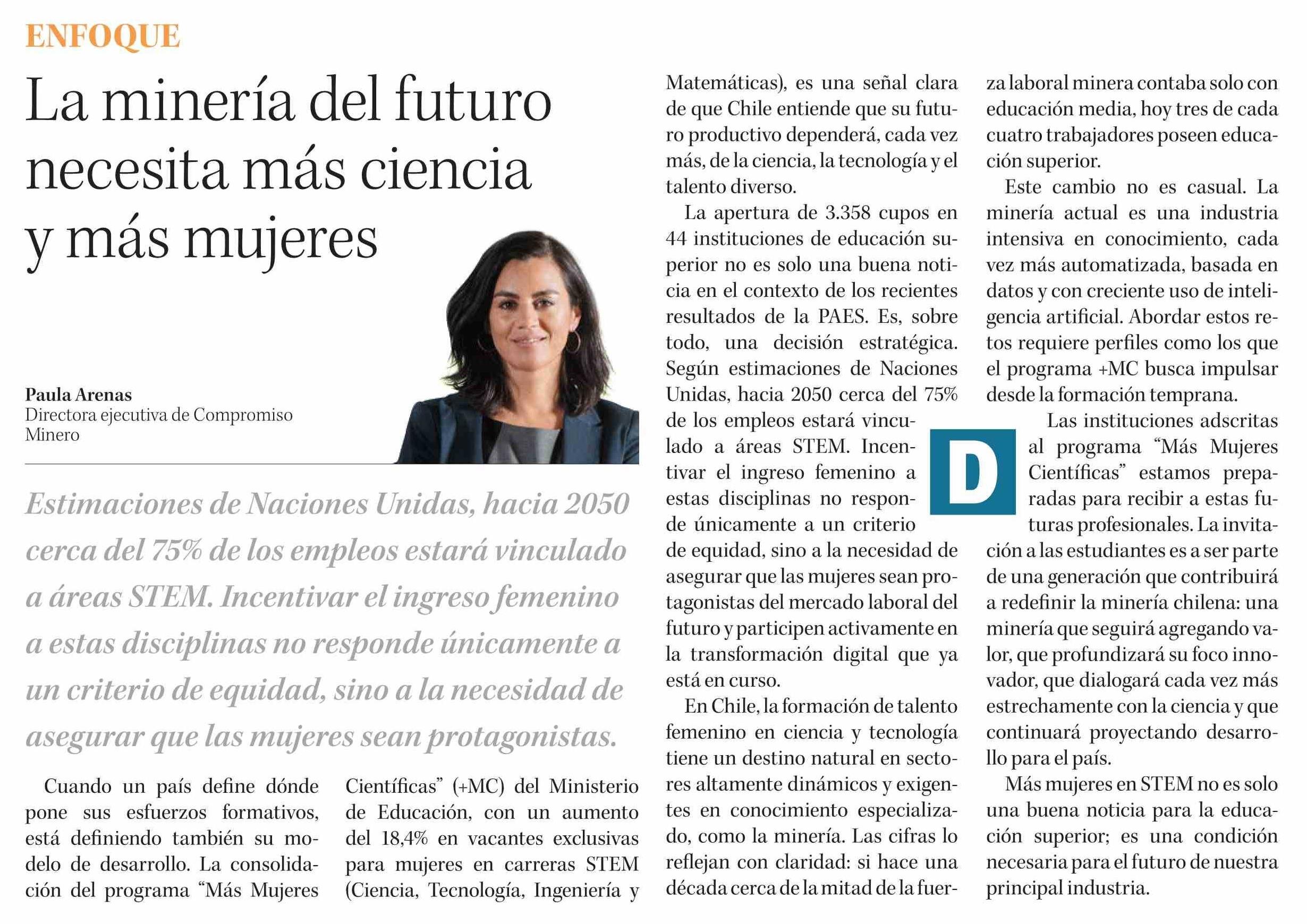 Columnas de Opinión: La minería del futuro necesita más ciencia y más mujeres 21-01-2026 Diario Concepción |