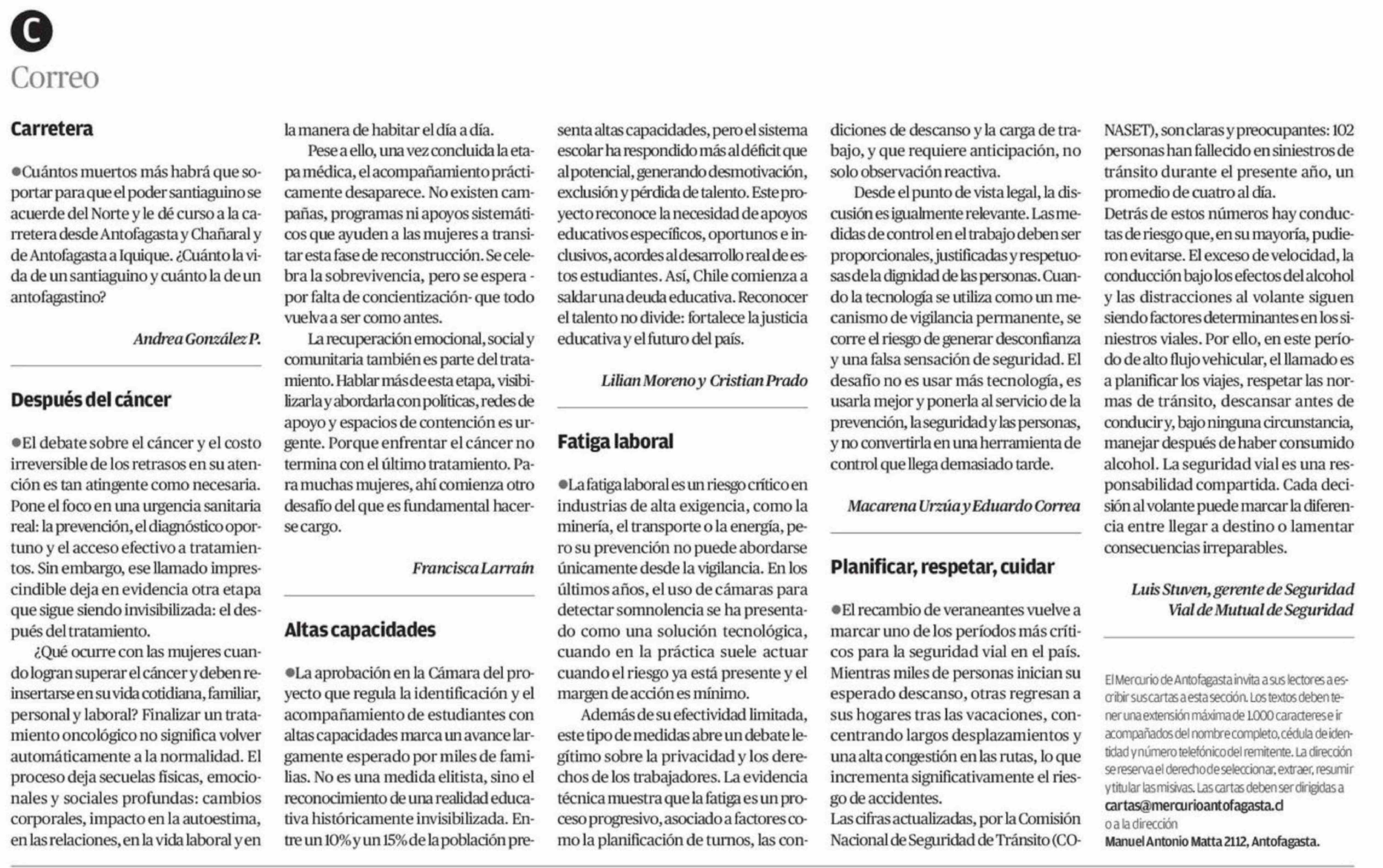 Cartas: Carretera 01-02-2026 El Mercurio de Antofagasta |