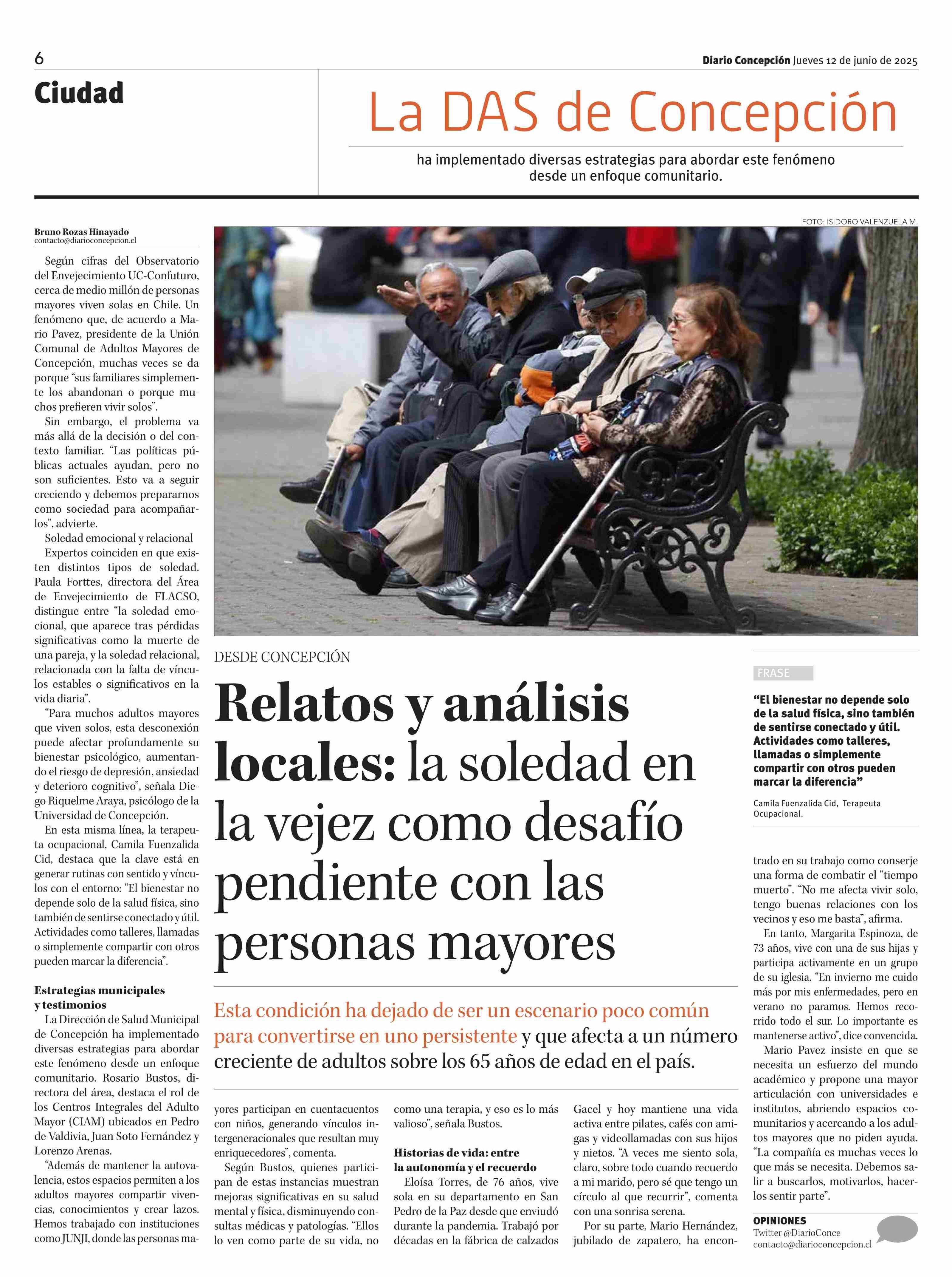 Relatos y análisis locales: la soledad en la vejez como desafío pendiente con las personas mayores 12-06-2025 Diario Concepción |