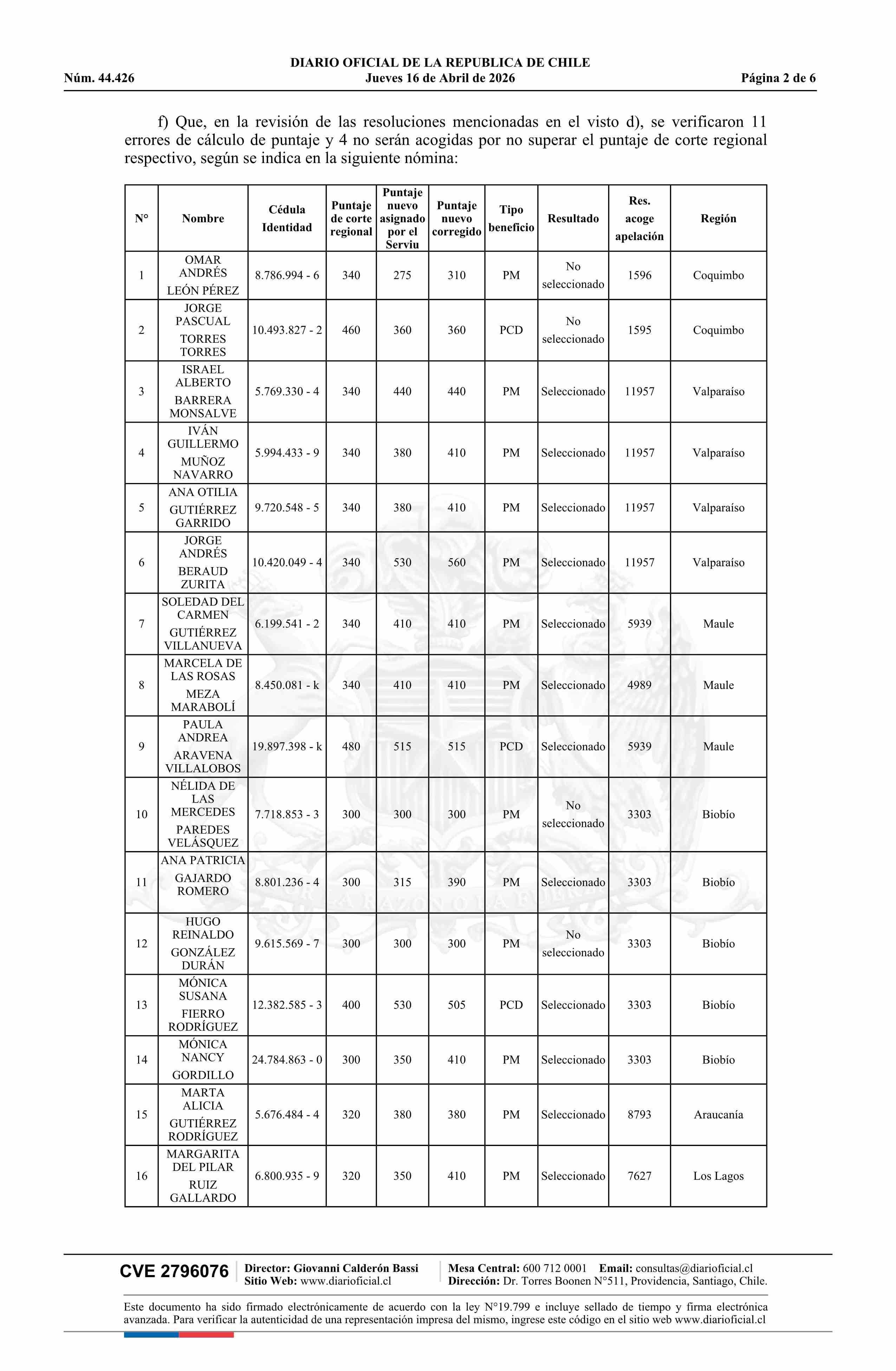 Fuente: Diario Oficial Edición Electrónica (Diario Oficial de Chile - 2 Normas Particulares) Página(s): 48-53