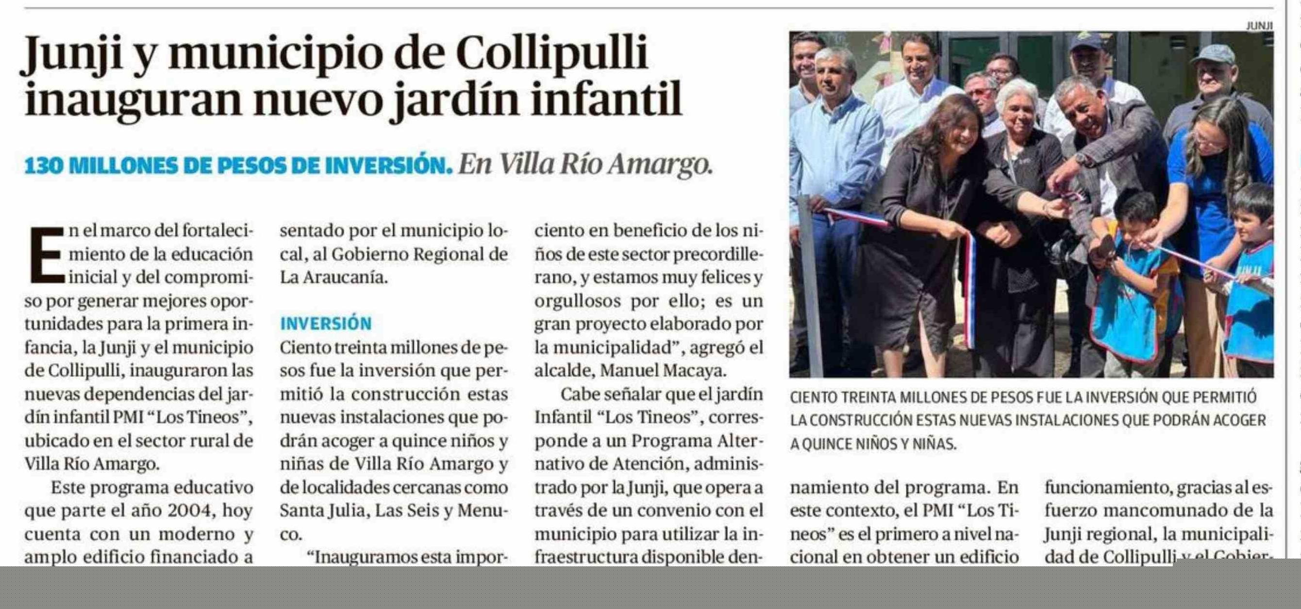 | Título: | Junji y municipio de Collipulli inauguran nuevo jardín infantil |