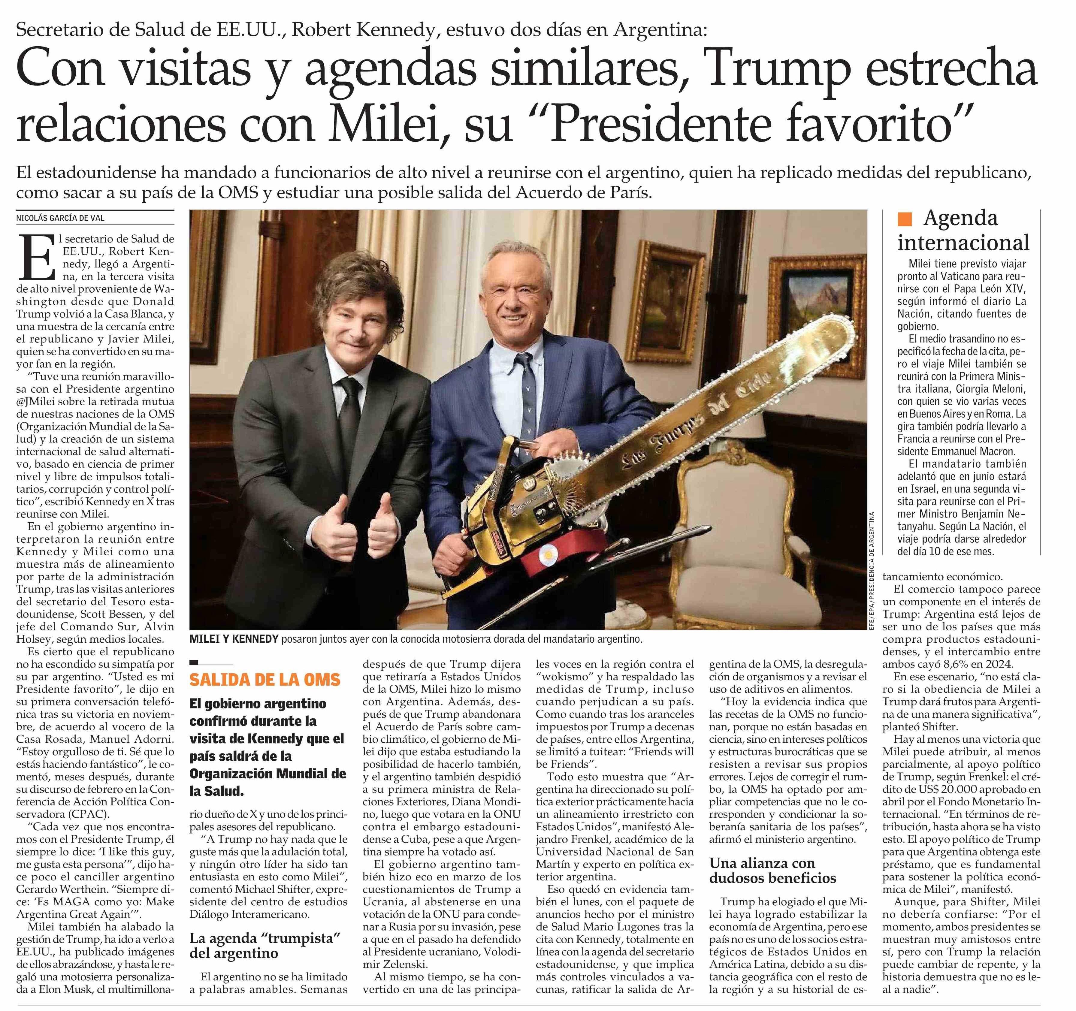 Con visitas y agendas similares, Trump estrecha relaciones con Milei, su "Presidente favorito" 28-05-2025 El Mercurio |