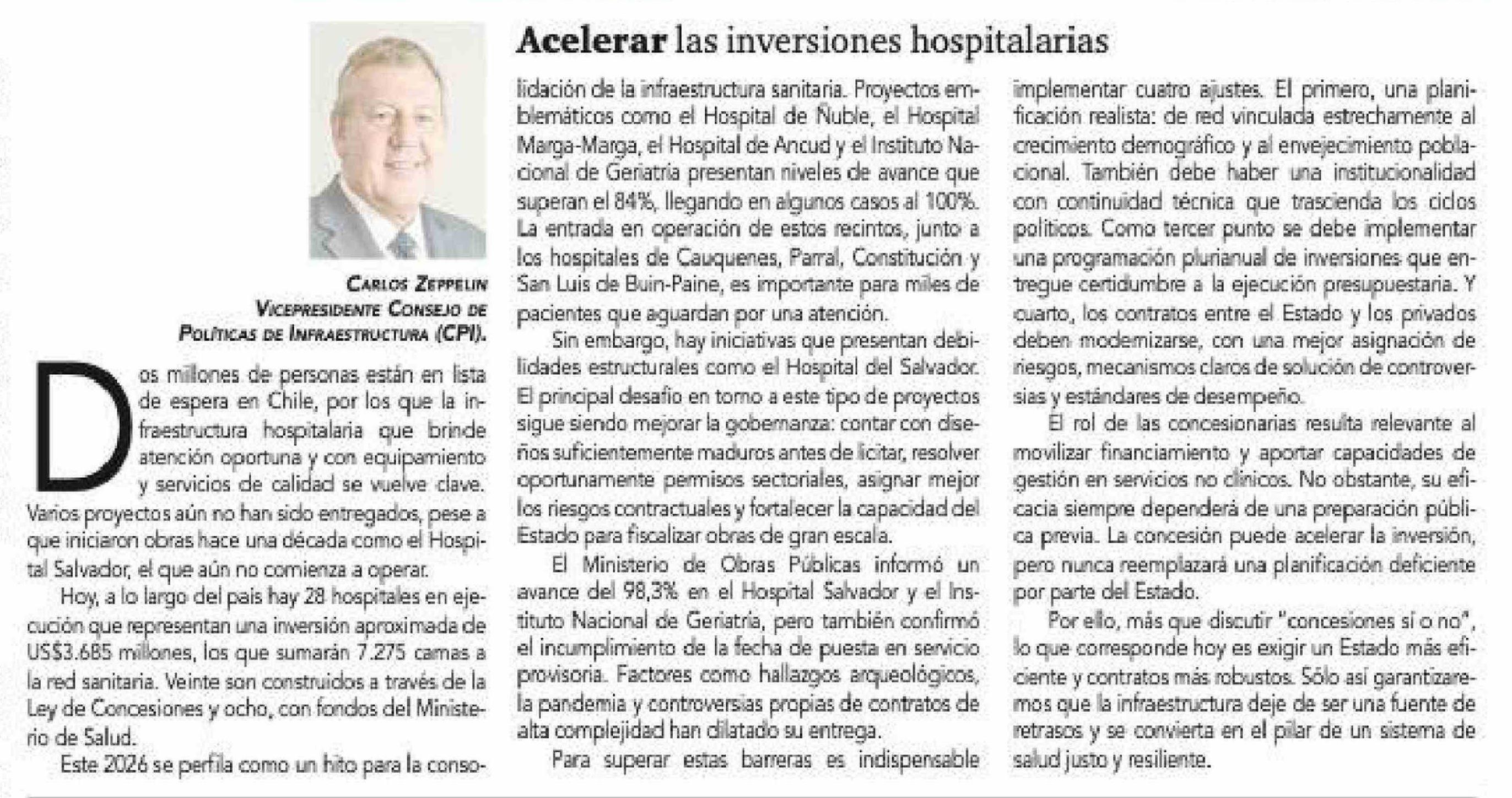 Título: Columnas de Opinión: Acelerar las inversiones hospitalarias