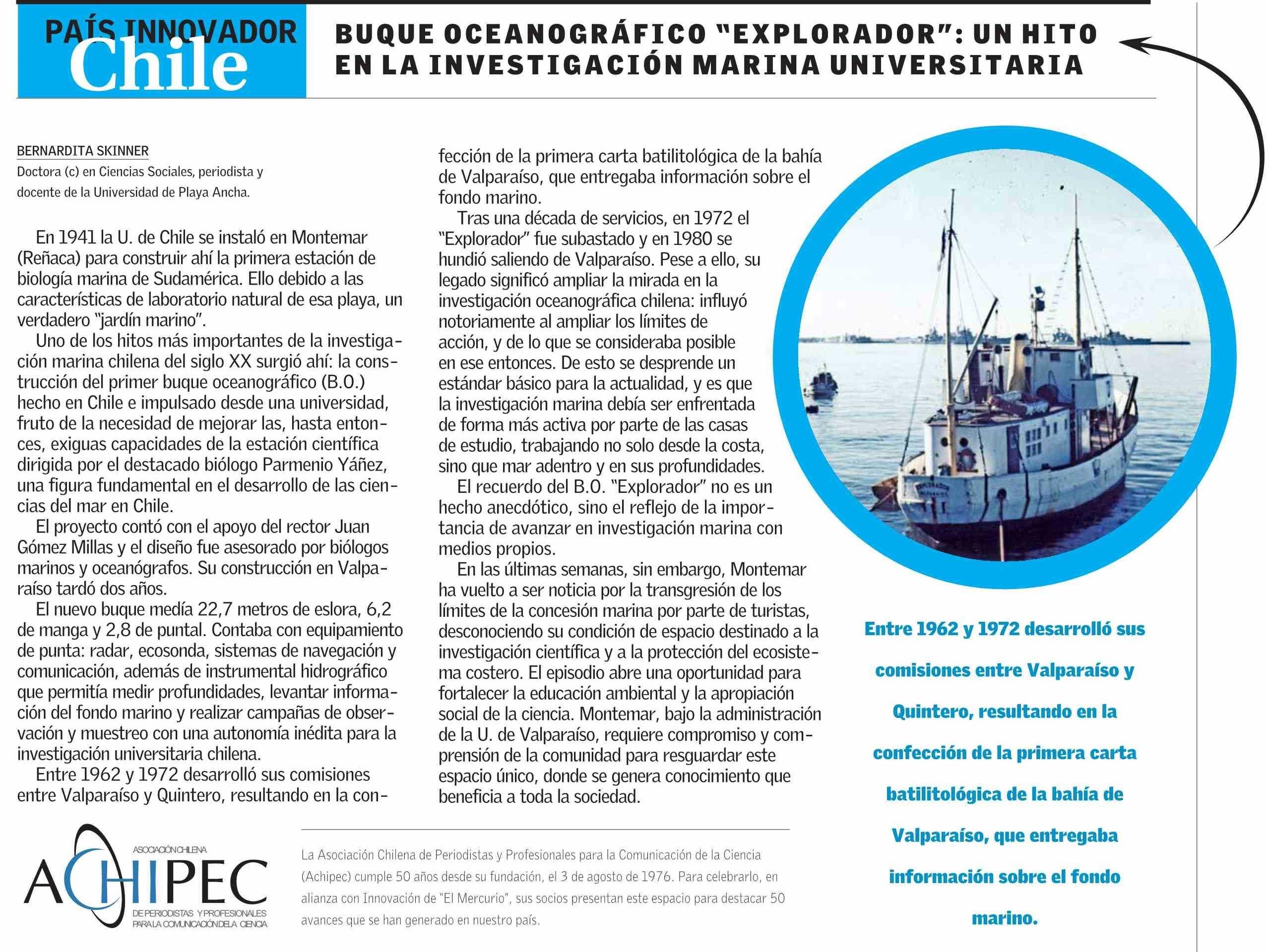 BUQUE OCEANOGRÁFICO “EXPLORADOR ” : UN HITO EN LA INVESTIGACIÓN MARINA UNIVERSITARIA