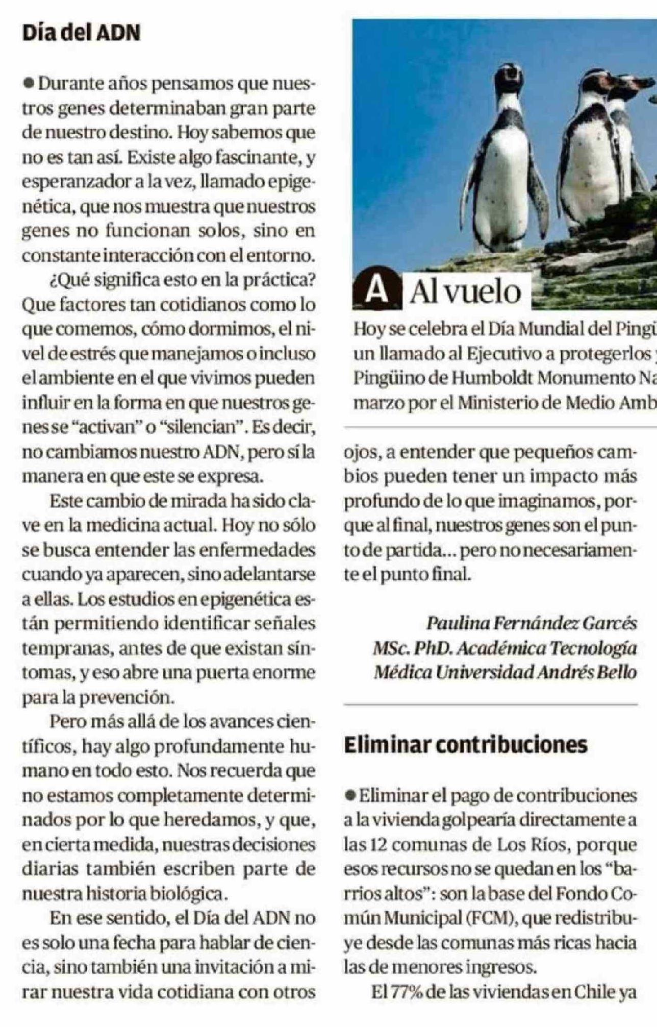 Cartas: Día del ADN 25-04-2026 Diario Austral Región de Los Ríos |