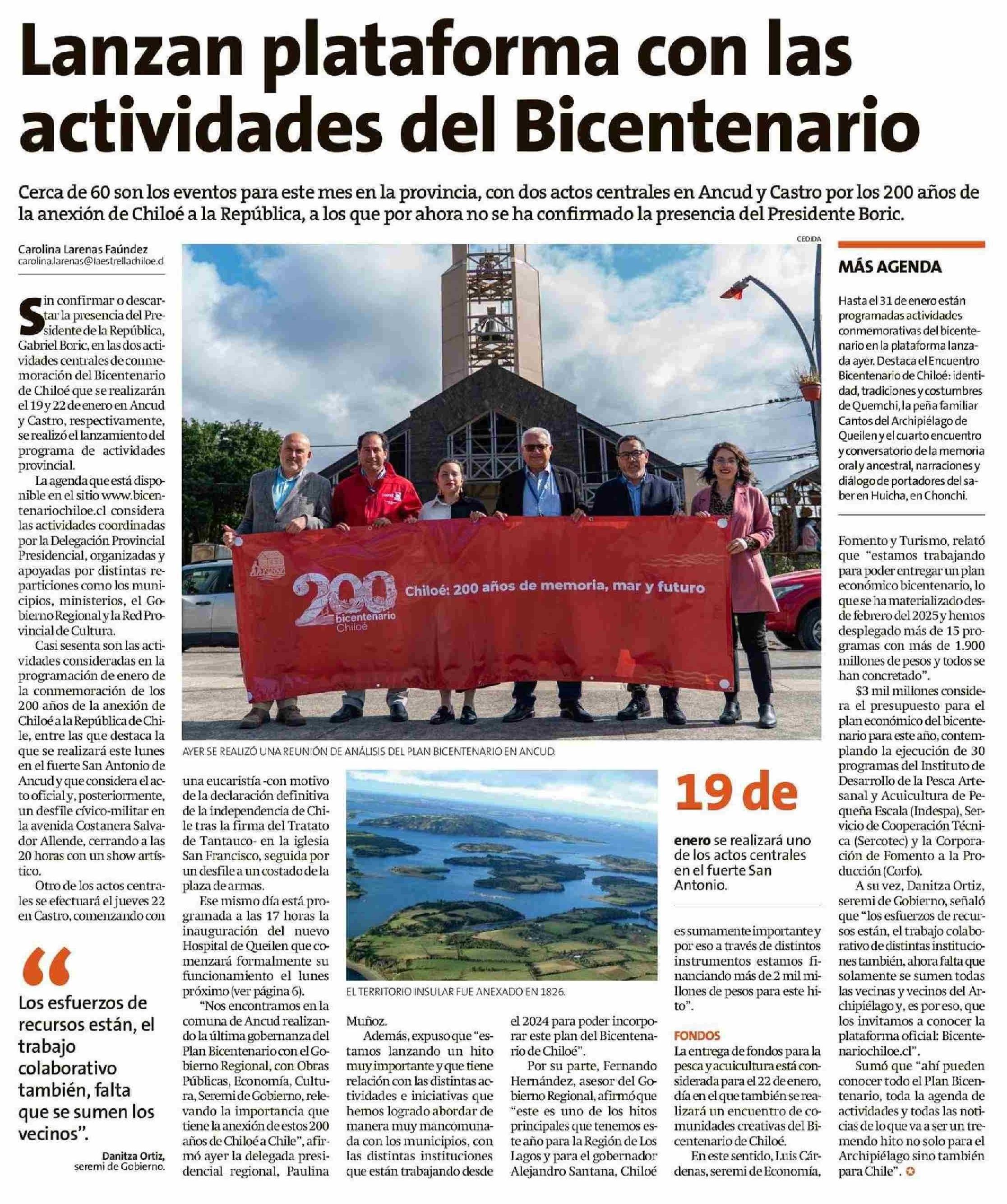 Lanzan plataforma con las actividades del Bicentenario 16-01-2026 La Estrella de Chiloé |