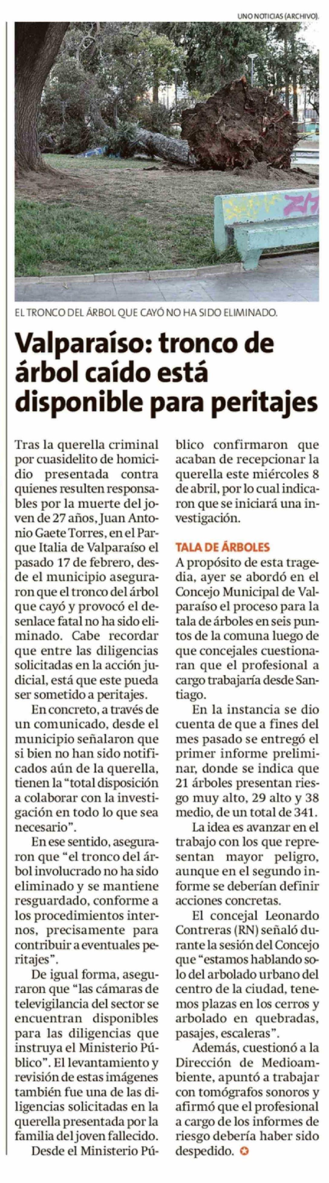 Valparaíso: tronco de árbol caído está disponible para peritajes 10-04-2026 La Estrella de Valparaíso |