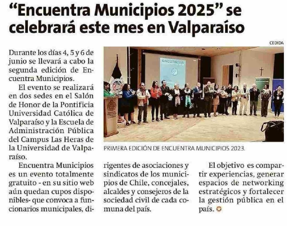 Título: “Encuentra Municipios 2025” se celebrará este mes en Valparaíso