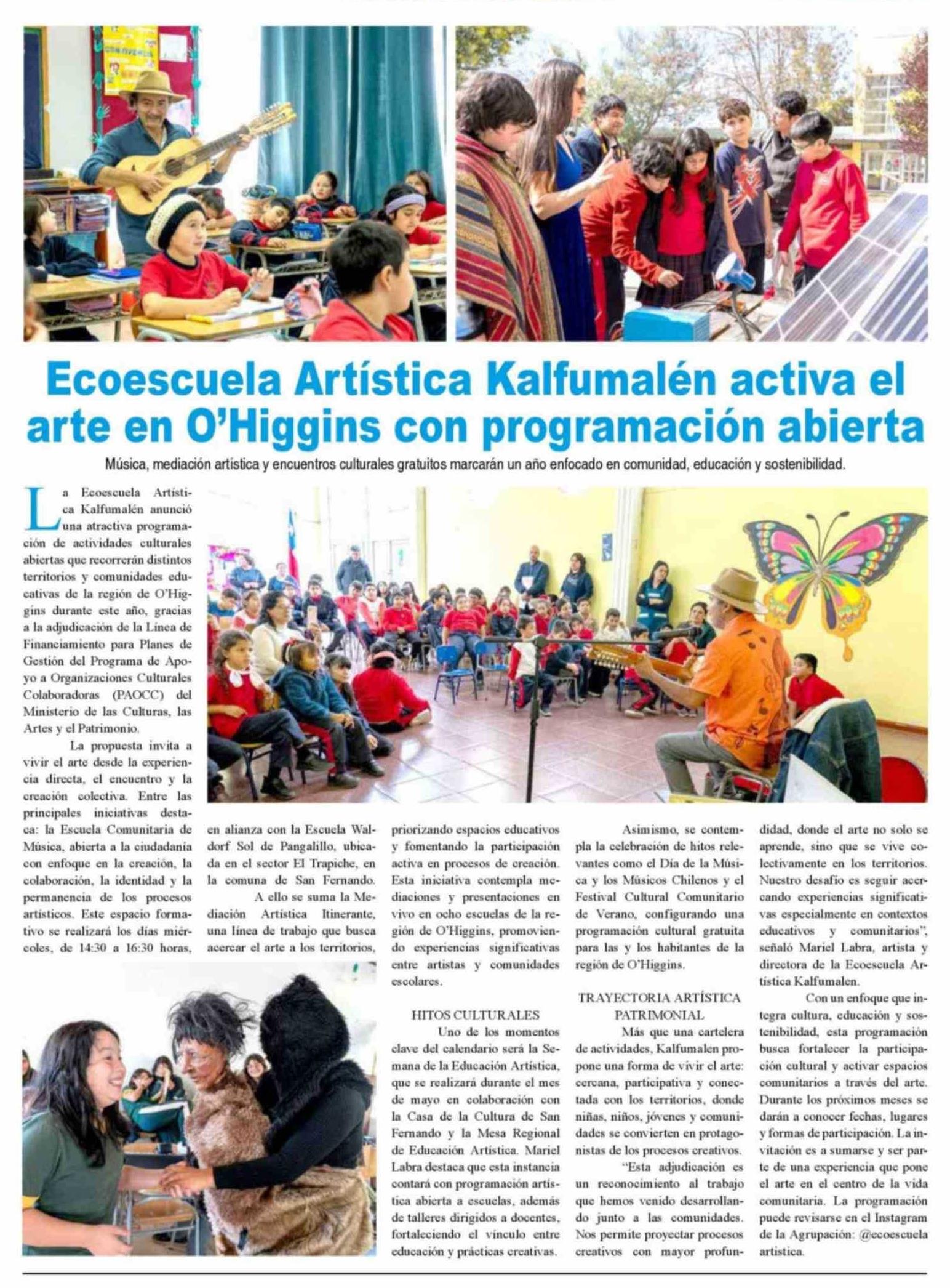 | Título: | Ecoescuela Artística Kalfumalén activa el arte en O'Higgins con programación abierta |