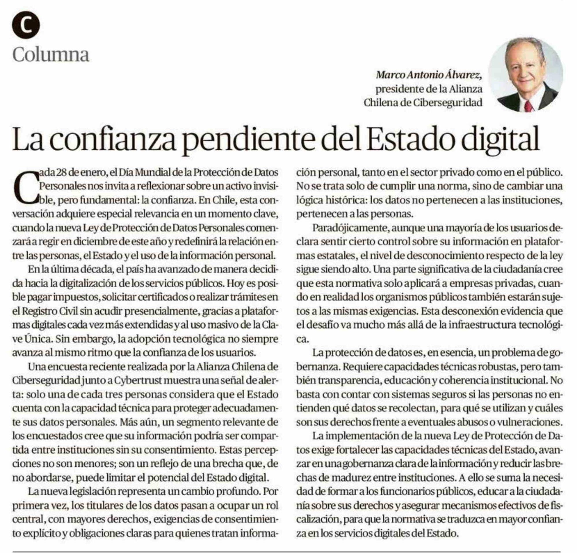 Columnas de Opinión: La confianza pendiente del Estado digital 28-01-2026 Crónica de Chillán |