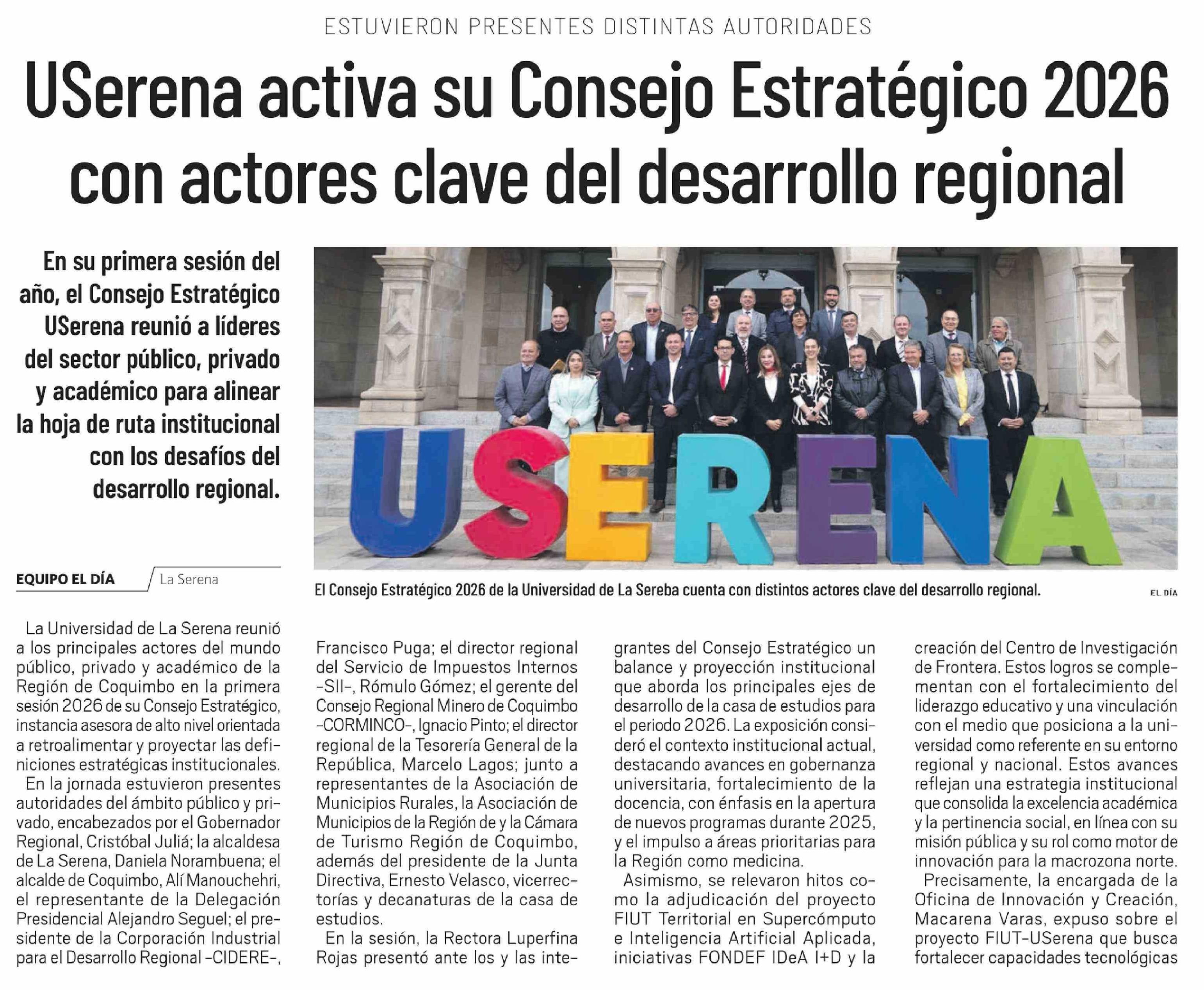 USerena activa su Consejo Estratégico 2026 con actores clave del desarrollo regional 12-04-2026 El Día |