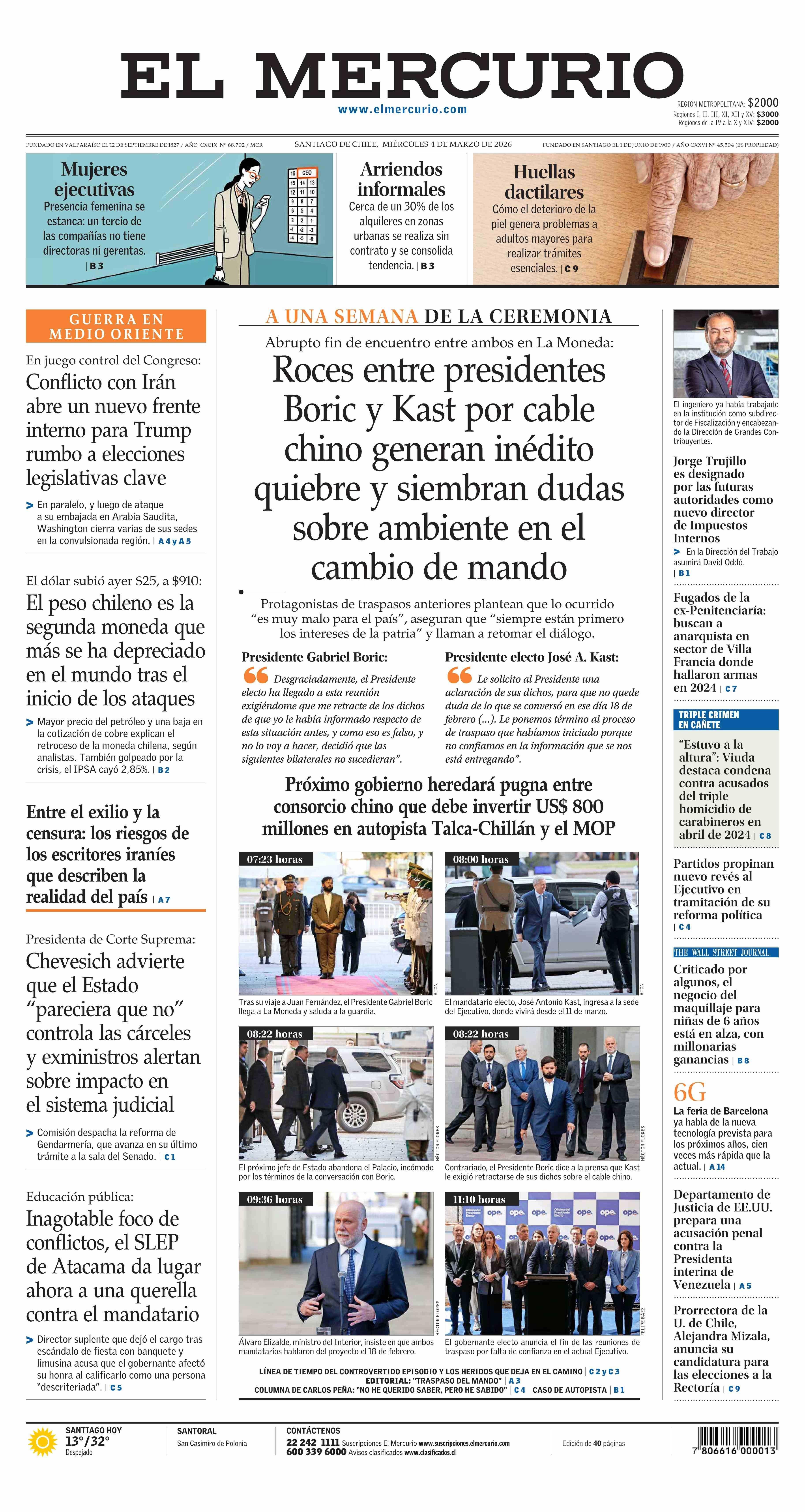 PORTADA EL MERCURIO (A) CHILE 04-03-2026 El Mercurio |