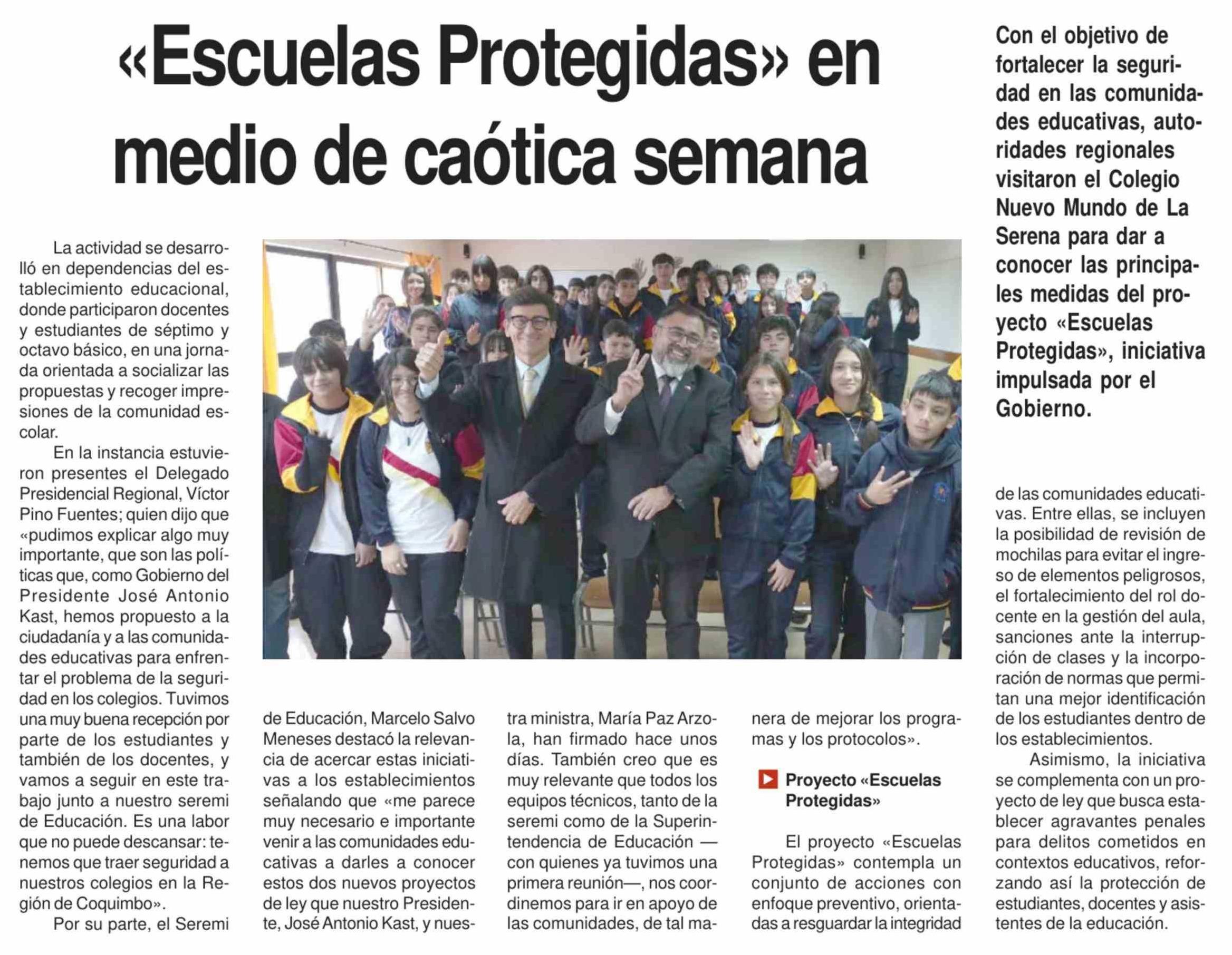 «Escuelas Protegidas» en medio de caótica semana 11-04-2026 Diario la Región |