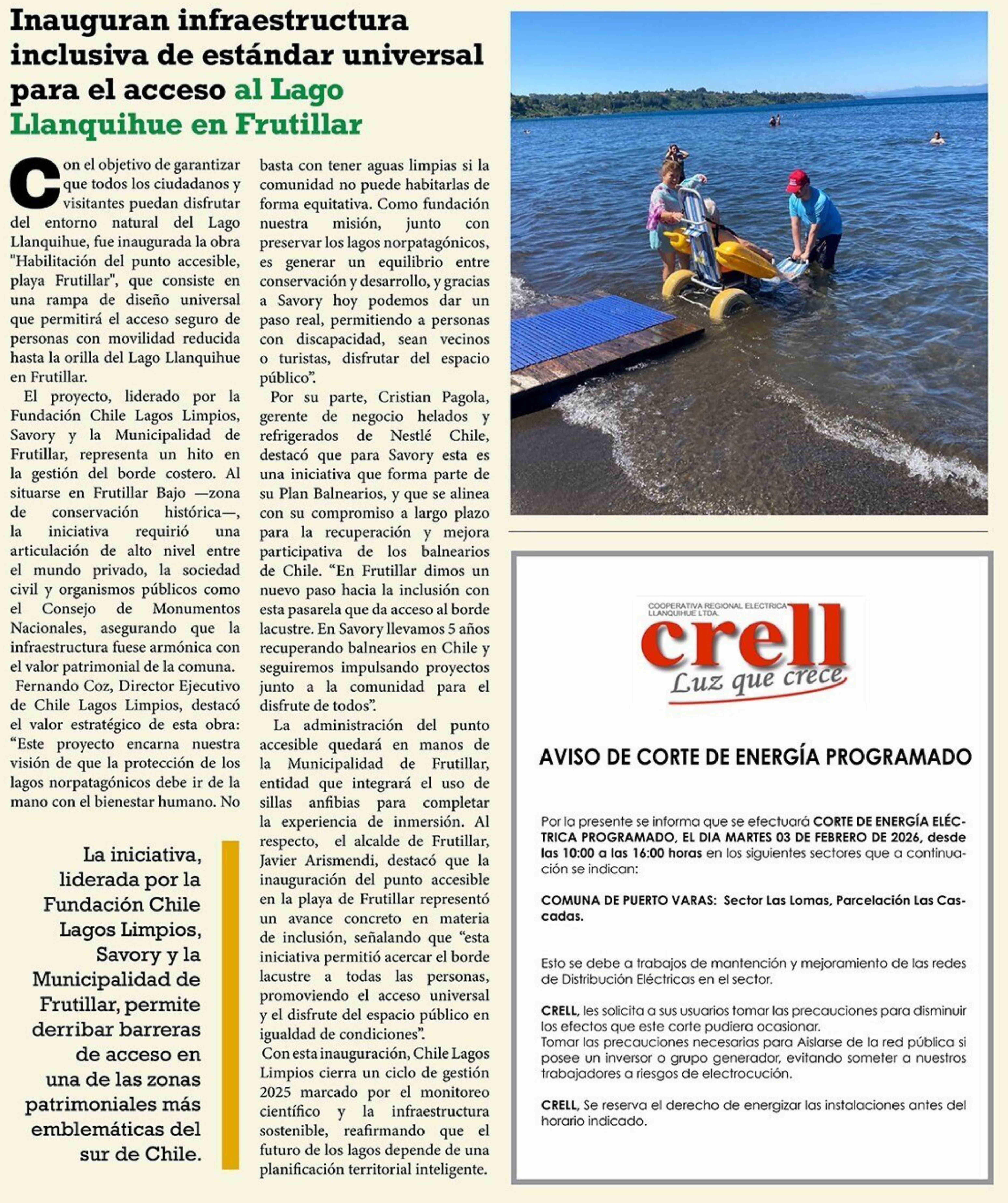 Fecha: 31-01-2026 Sector: Noticia general Región: Región de Los Lagos