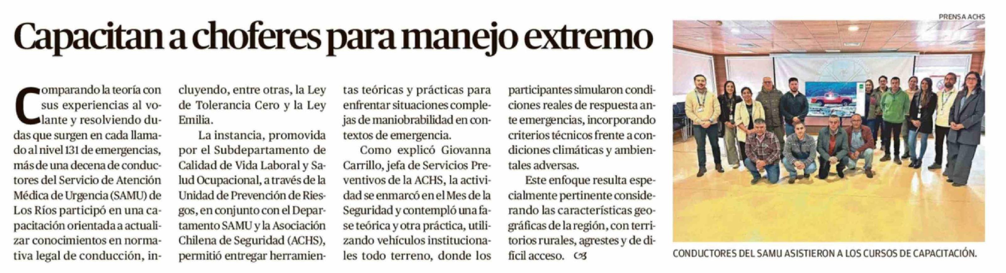 Capacitan a choferes para manejo extremo 19-04-2026 Diario Austral Región de Los Ríos |