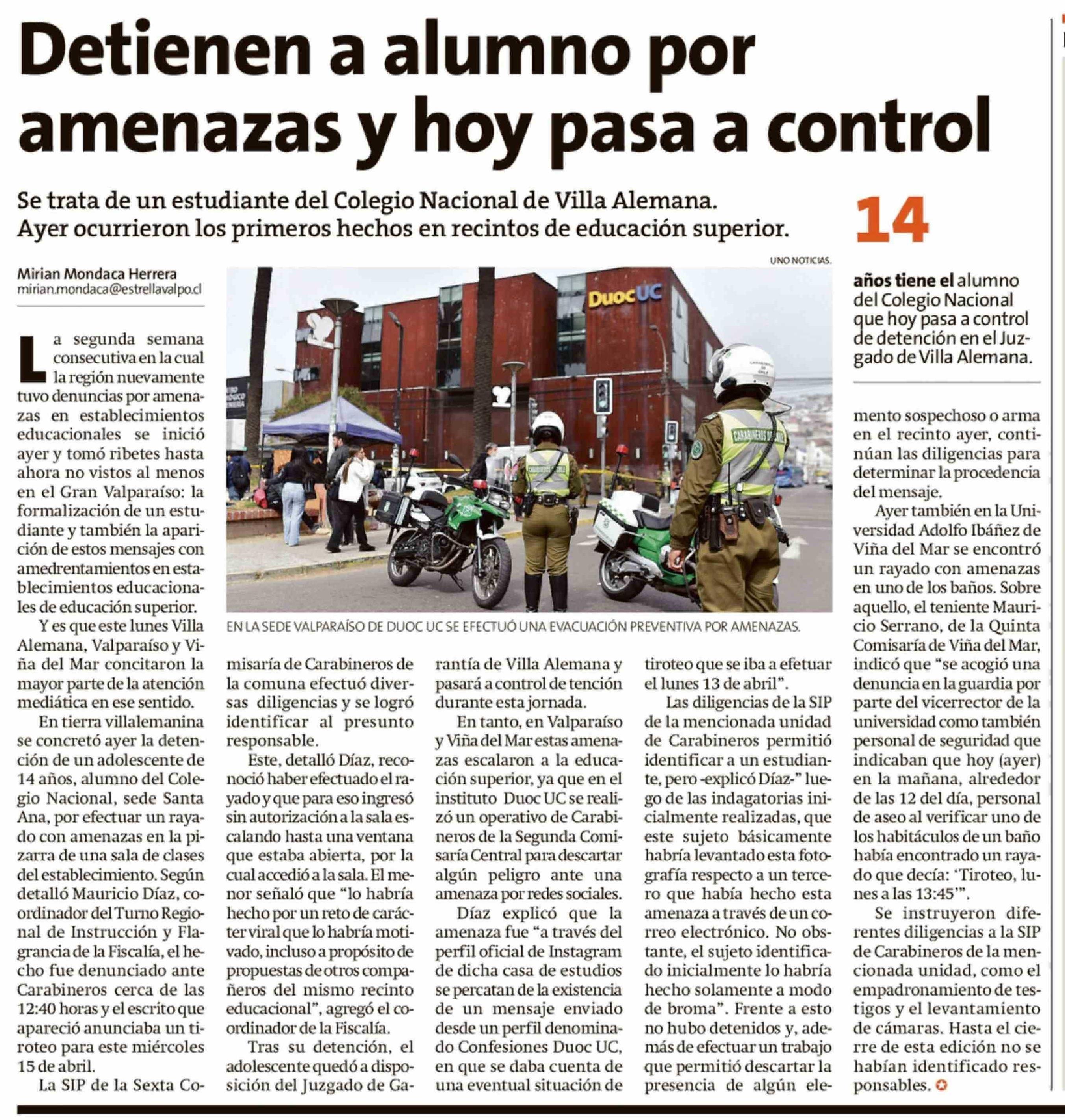 Título: Detienen a alumno por amenazas y hoy pasa a control