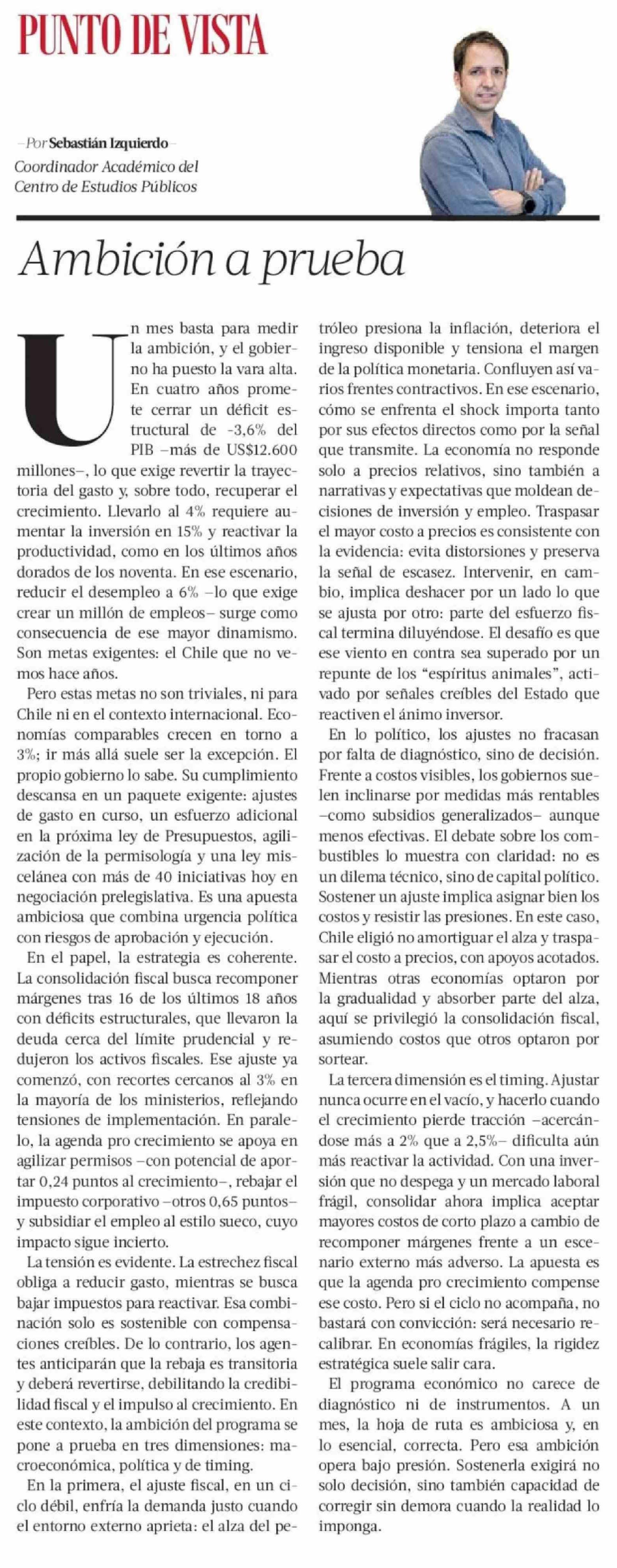 Columnas de Opinión: Ambición a prueba 11-04-2026 La Tercera |