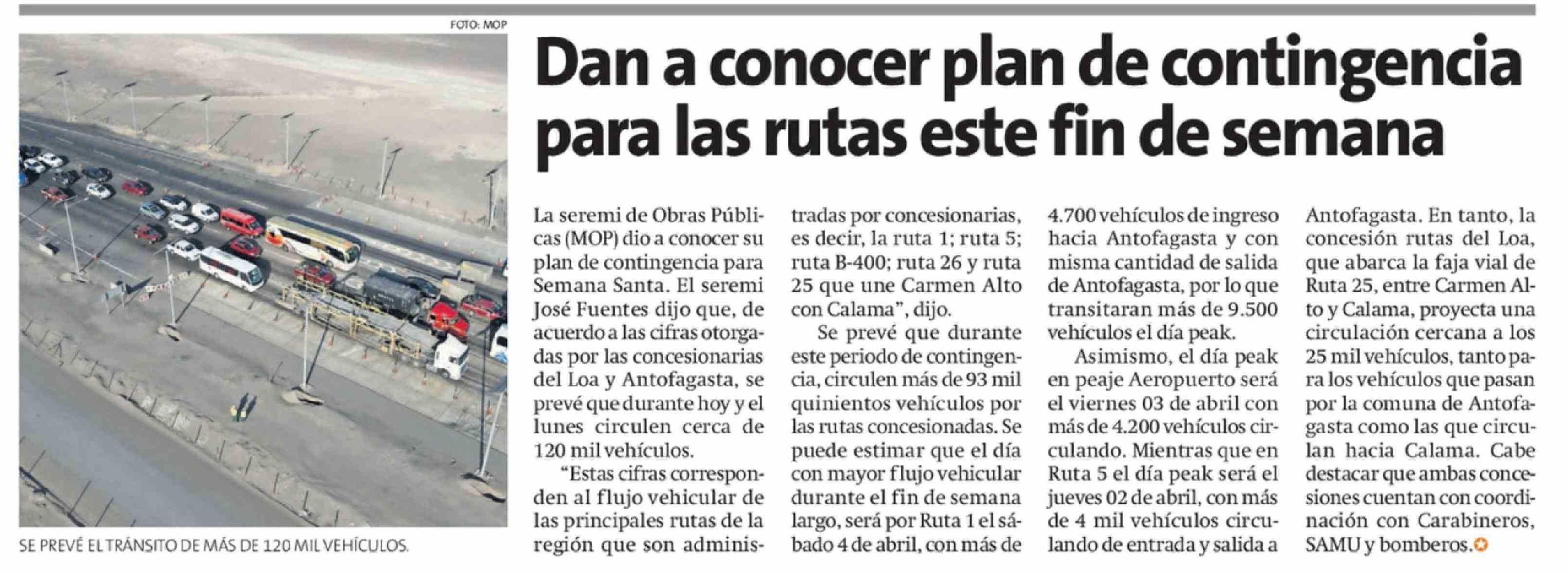 Dan a conocer plan de contingencia para las rutas este fin de semana 02-04-2026 La Estrella de Antofagasta |