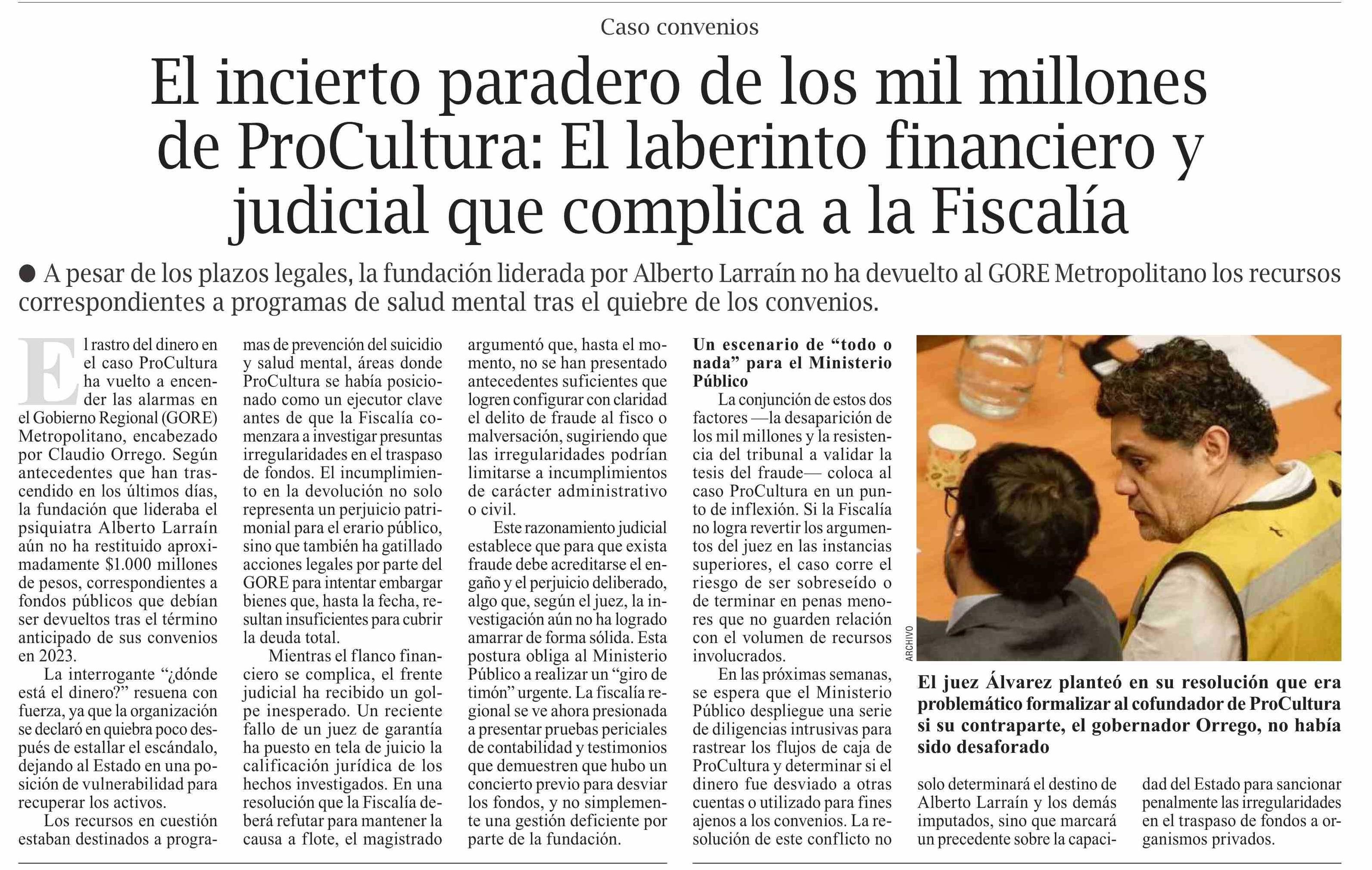 Título: El incierto paradero de los mil millones de ProCultura: El laberinto financiero y judicial que complica a la Fiscalía