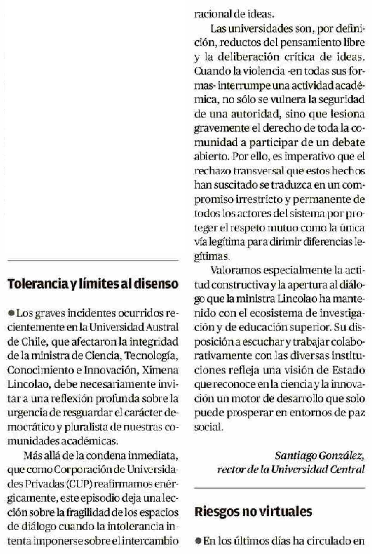 | Título: | CARTAS: Tolerancia y límites al disenso |