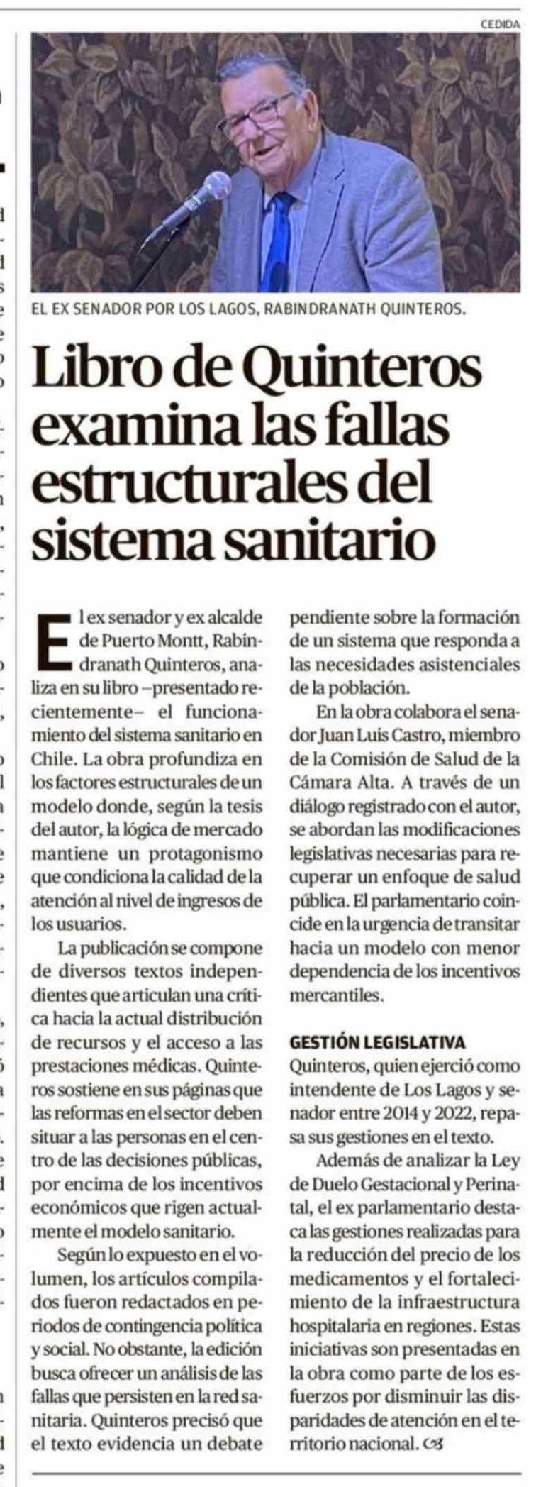Libro de Quinteros examina las fallas estructurales del sistema sanitario 22-02-2026 El Llanquihue |