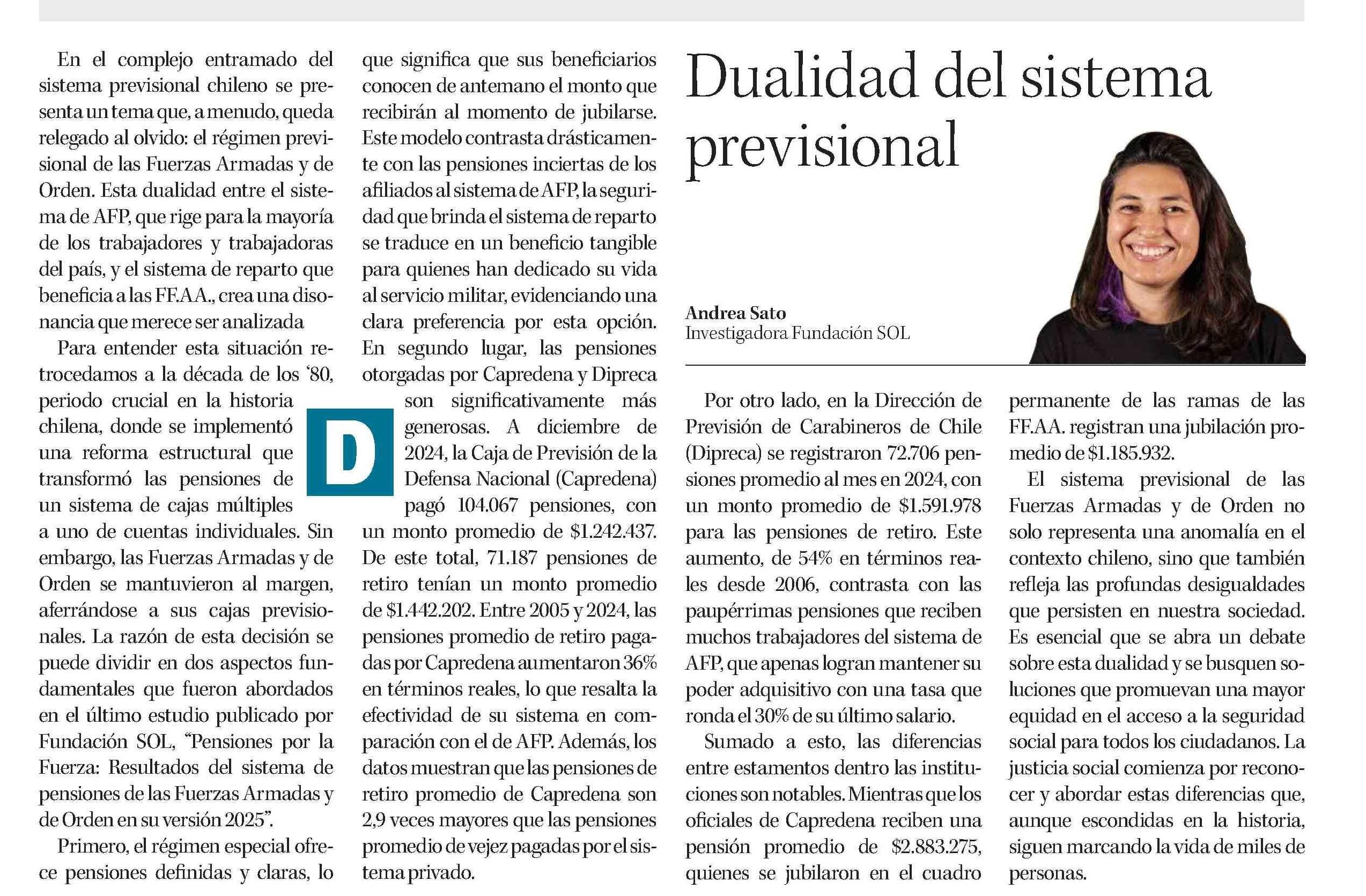 COLUMNAS DE OPINIÓN: Dualidad del sistema previsional 09-06-2025 Diario Concepción |