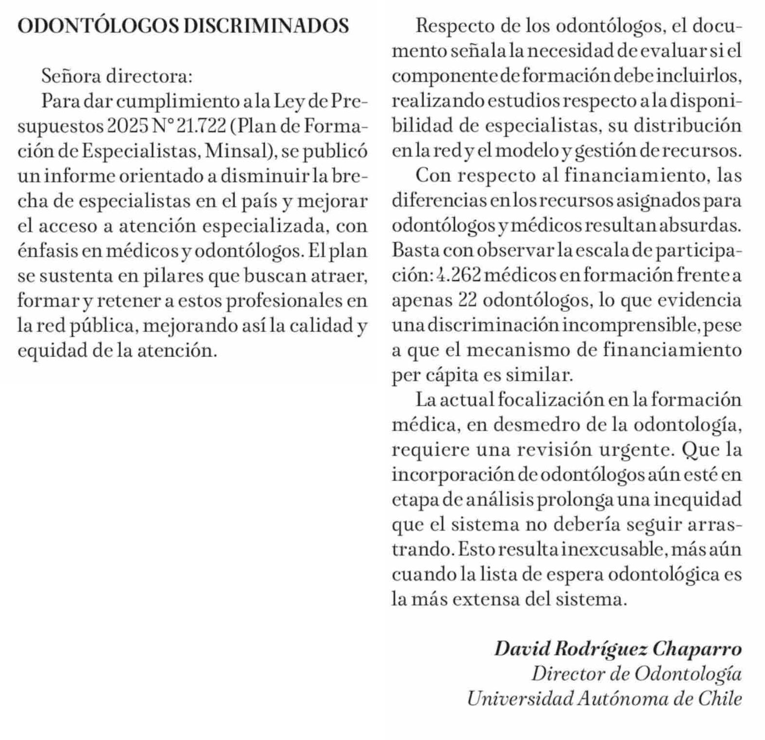 CARTAS: ODONTÓLOGOS DISCRIMINADOS