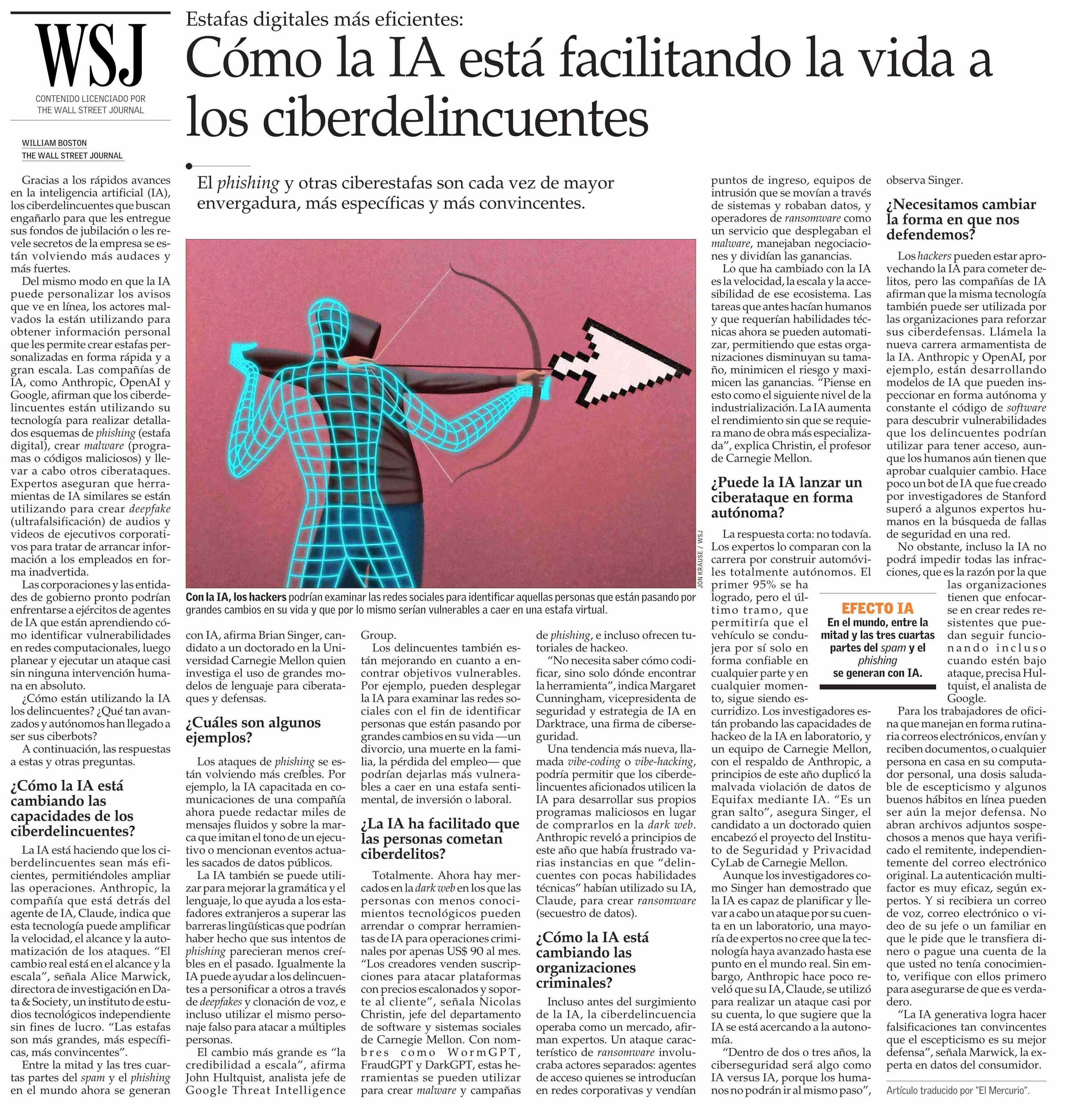 Cómo la IA está facilitando la vida a los ciberdelincuentes 15-01-2026 El Mercurio |
