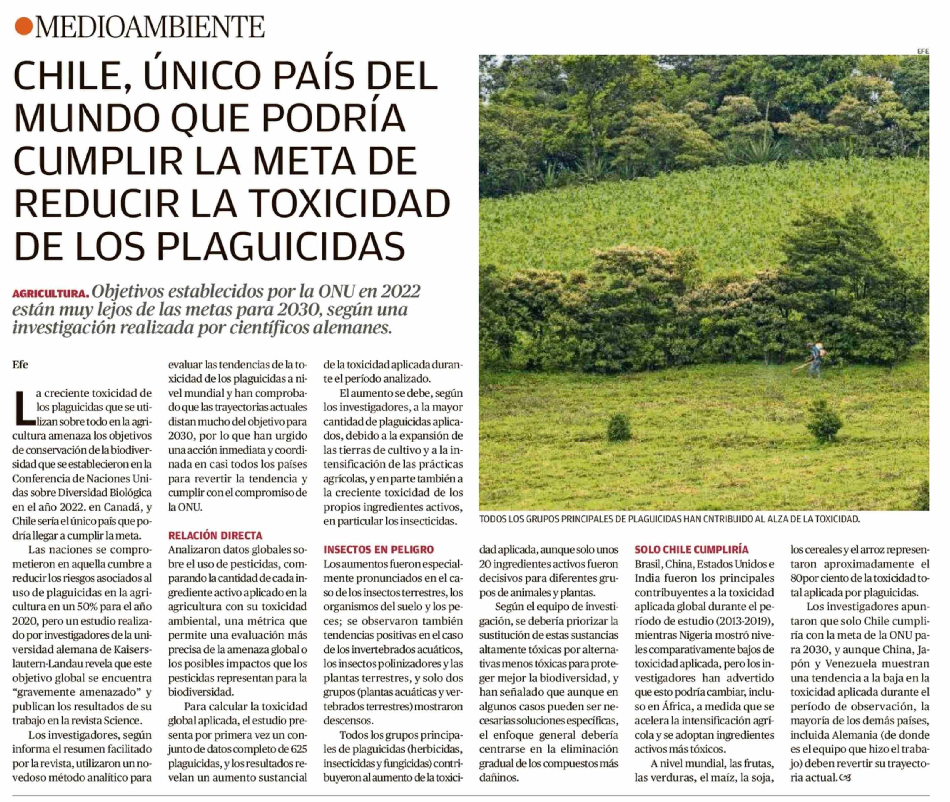 Título: CHILE, ÚNICO PAÍS DEL MUNDO QUE PODRÍA CUMPLIR LA META DE REDUCIR LA TOXICIDAD DE LOS PLAGUICIDAS