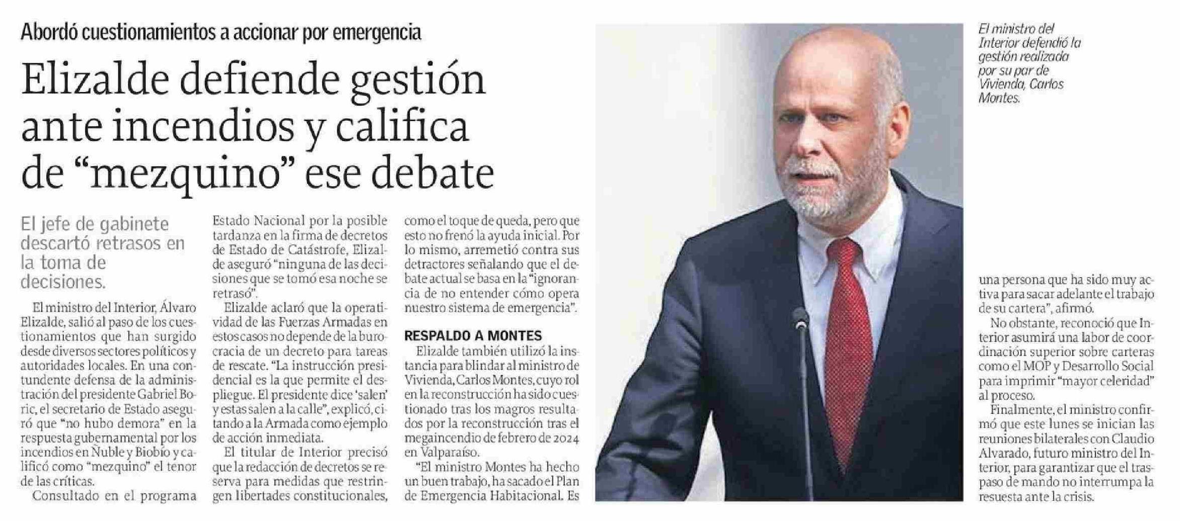 Título: Elizalde defiende gestión ante incendios y califica de "mezquino" ese debate
