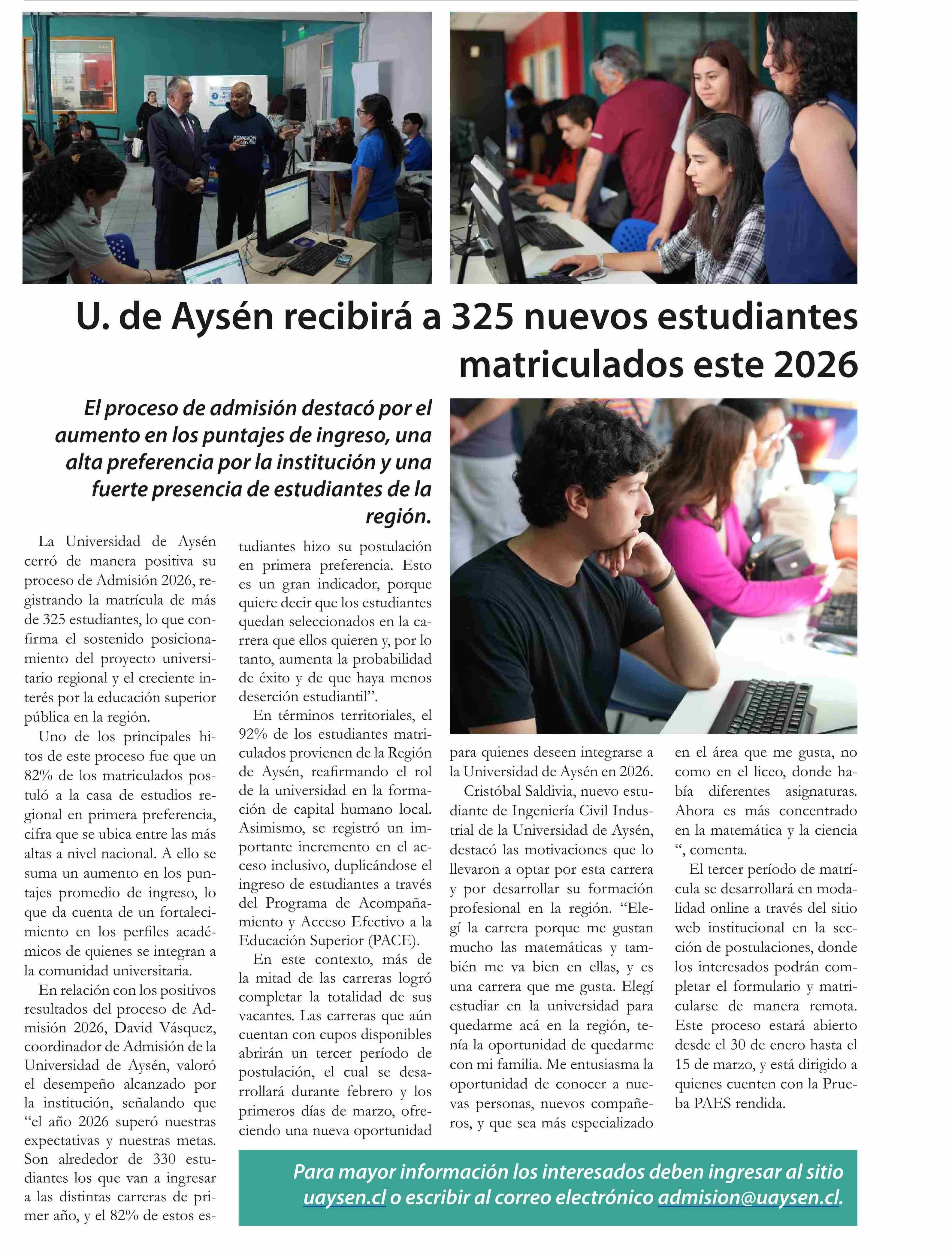 | Título: | U. de Aysén recibirá a 325 nuevos estudiantes matriculados este 2026 |