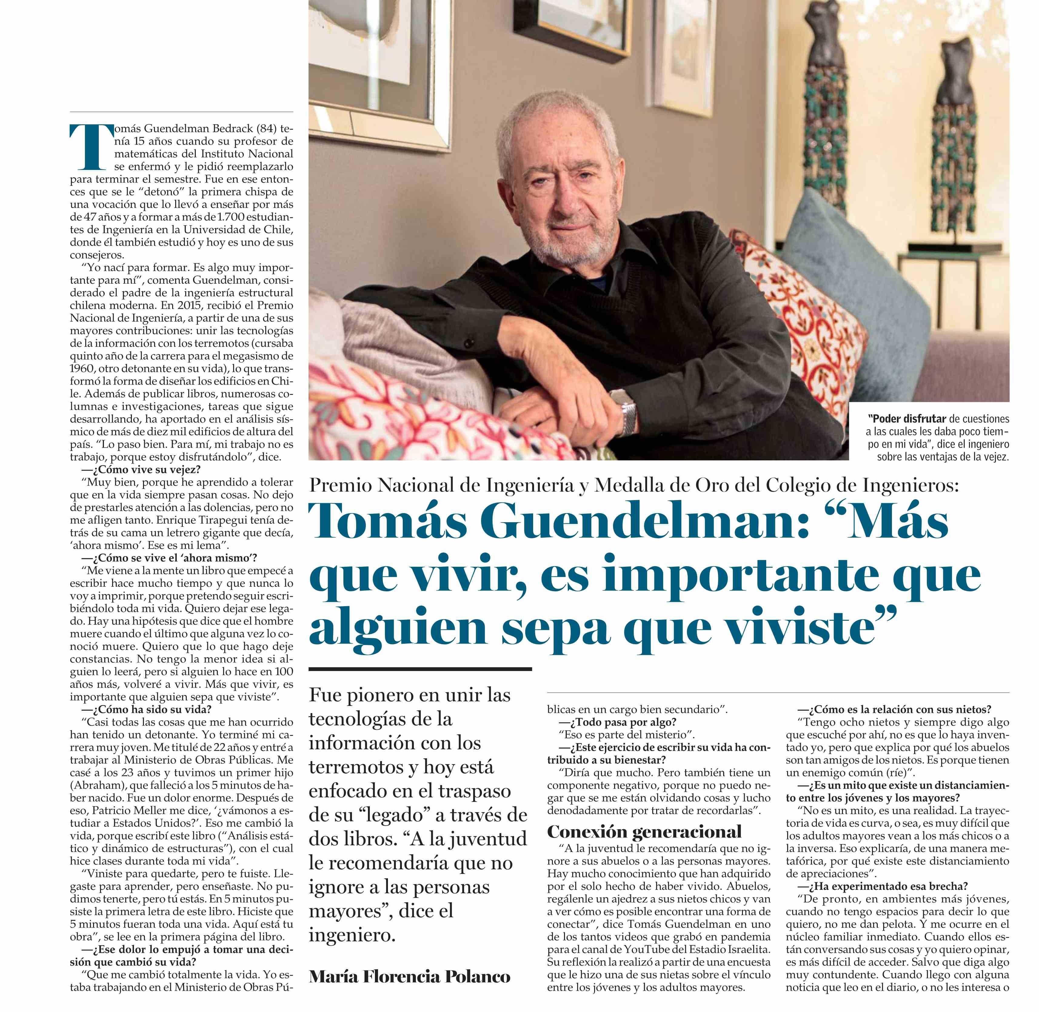 Tomas Guendelman: Mas que vivir, es importante que alguien sepa que viviste” 17-06-2024 El Mercurio |