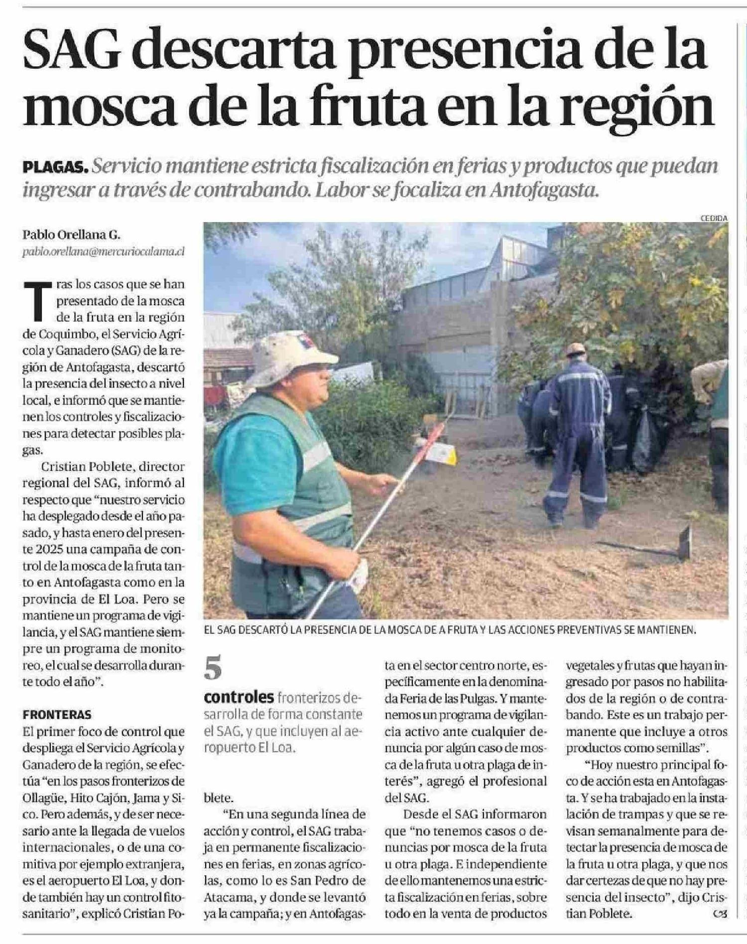 Título: SAG descarta presencia de la mosca de la fruta en la región