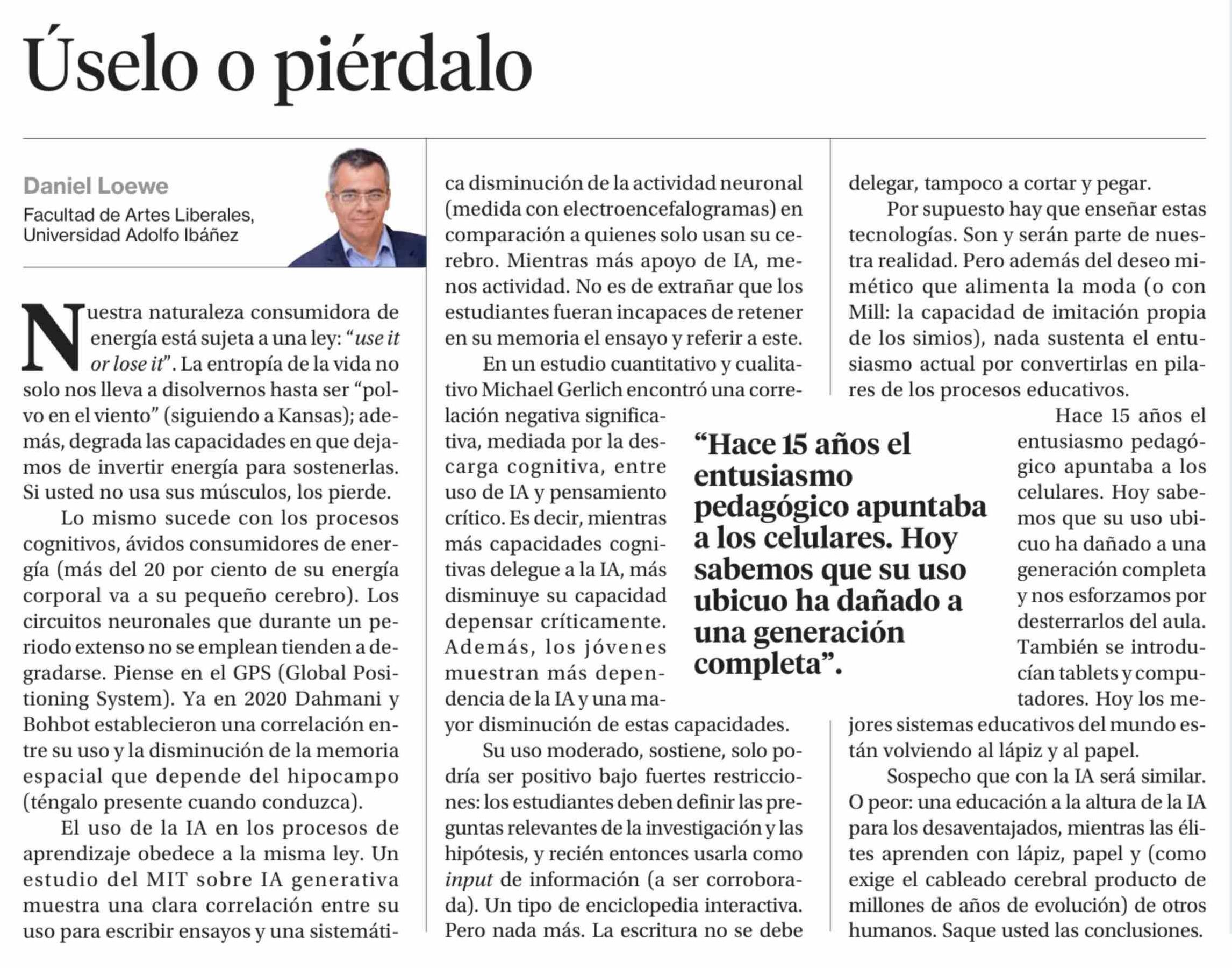 Título: Columnas de Opinión: Úselo o piérdalo