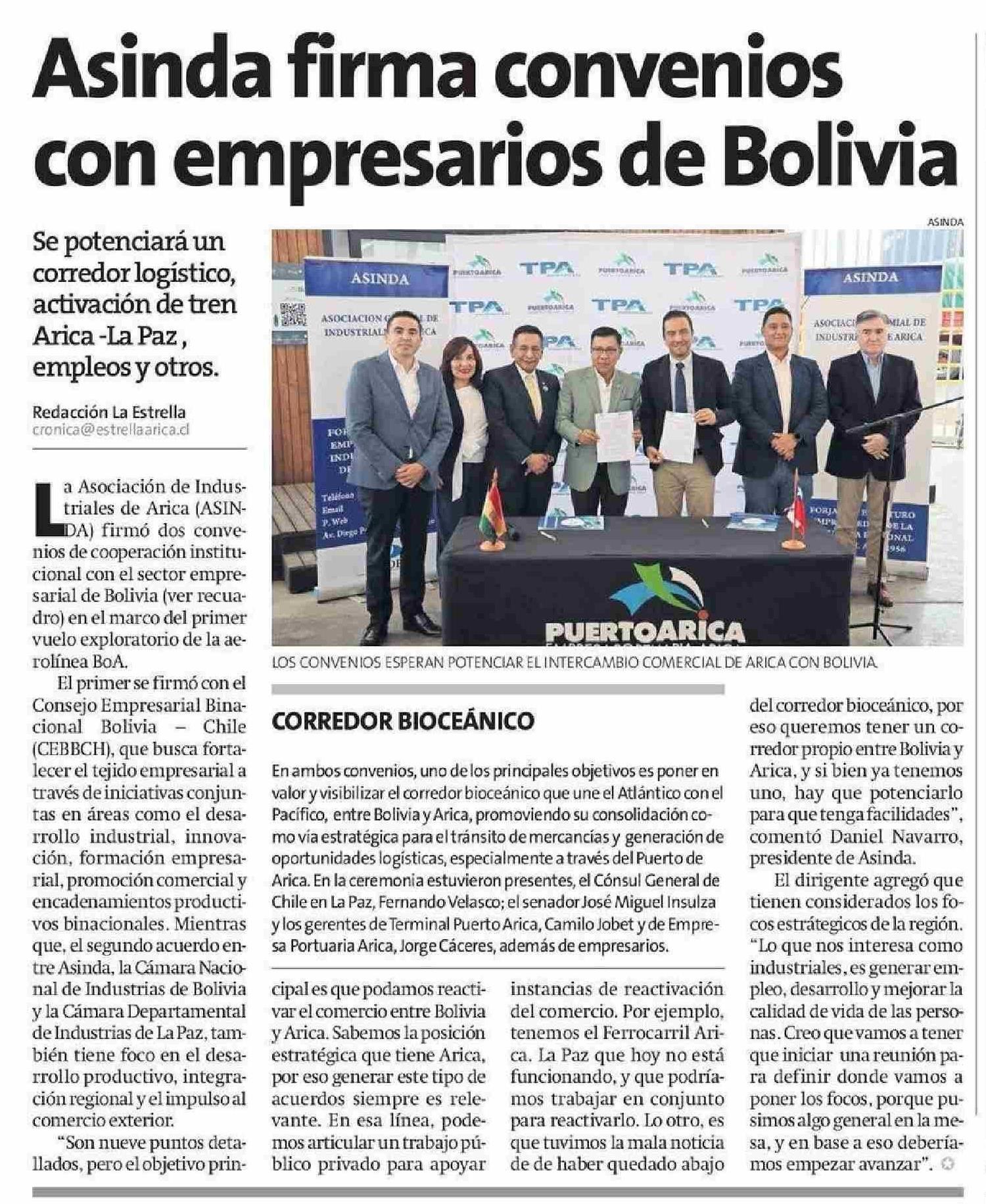 Asinda firma convenios con empresarios de Bolivia 26-06-2025 La Estrella de Arica |