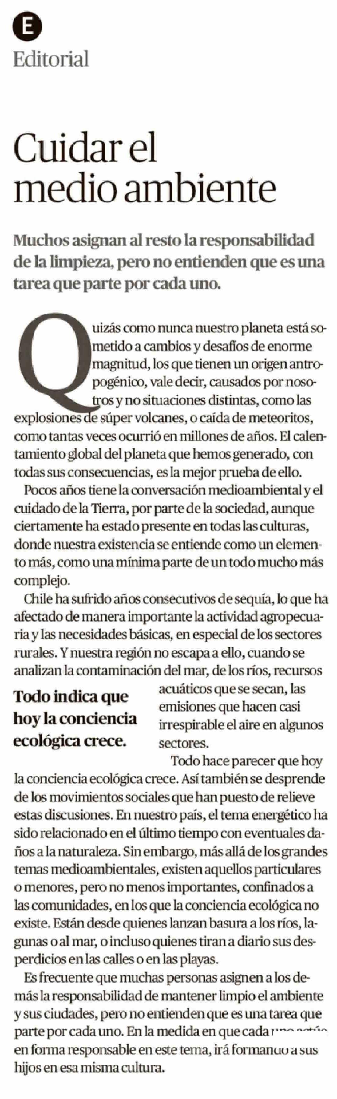 Editorial: Cuidar el medio ambiente 25-04-2026 Crónica de Chillán |