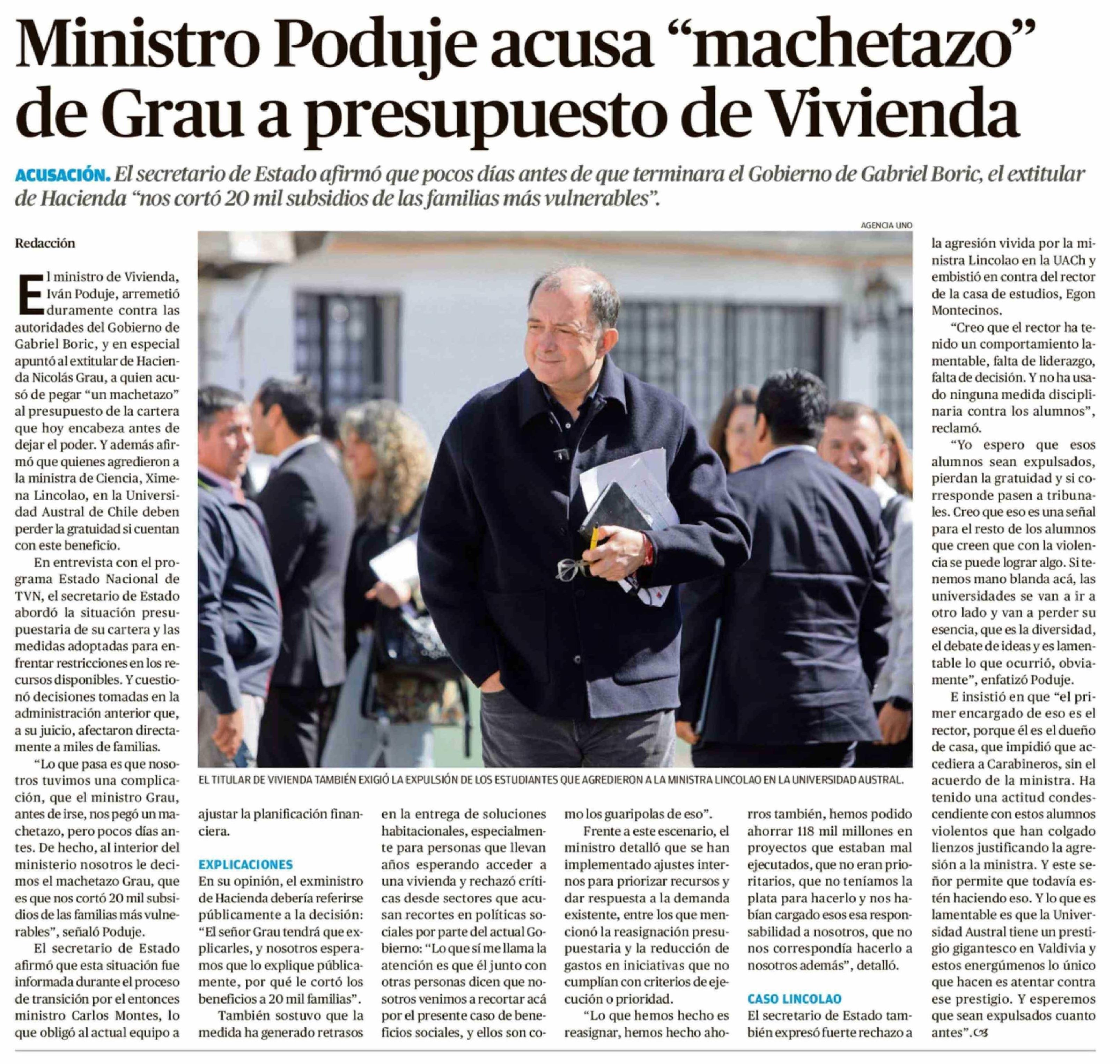 Título: Ministro Poduje acusa "machetazo" de Grau a presupuesto de Vivienda