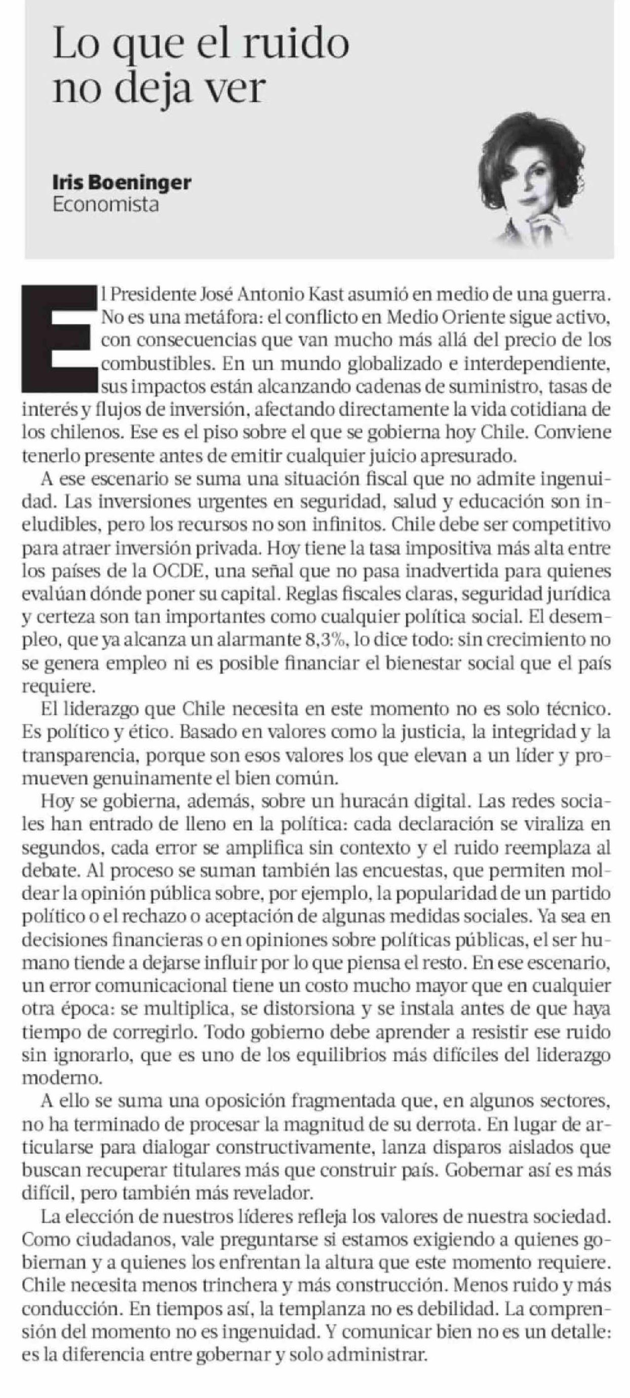 Columnas de Opinión: Lo que el ruido no deja ver 06-04-2026 La Tercera |