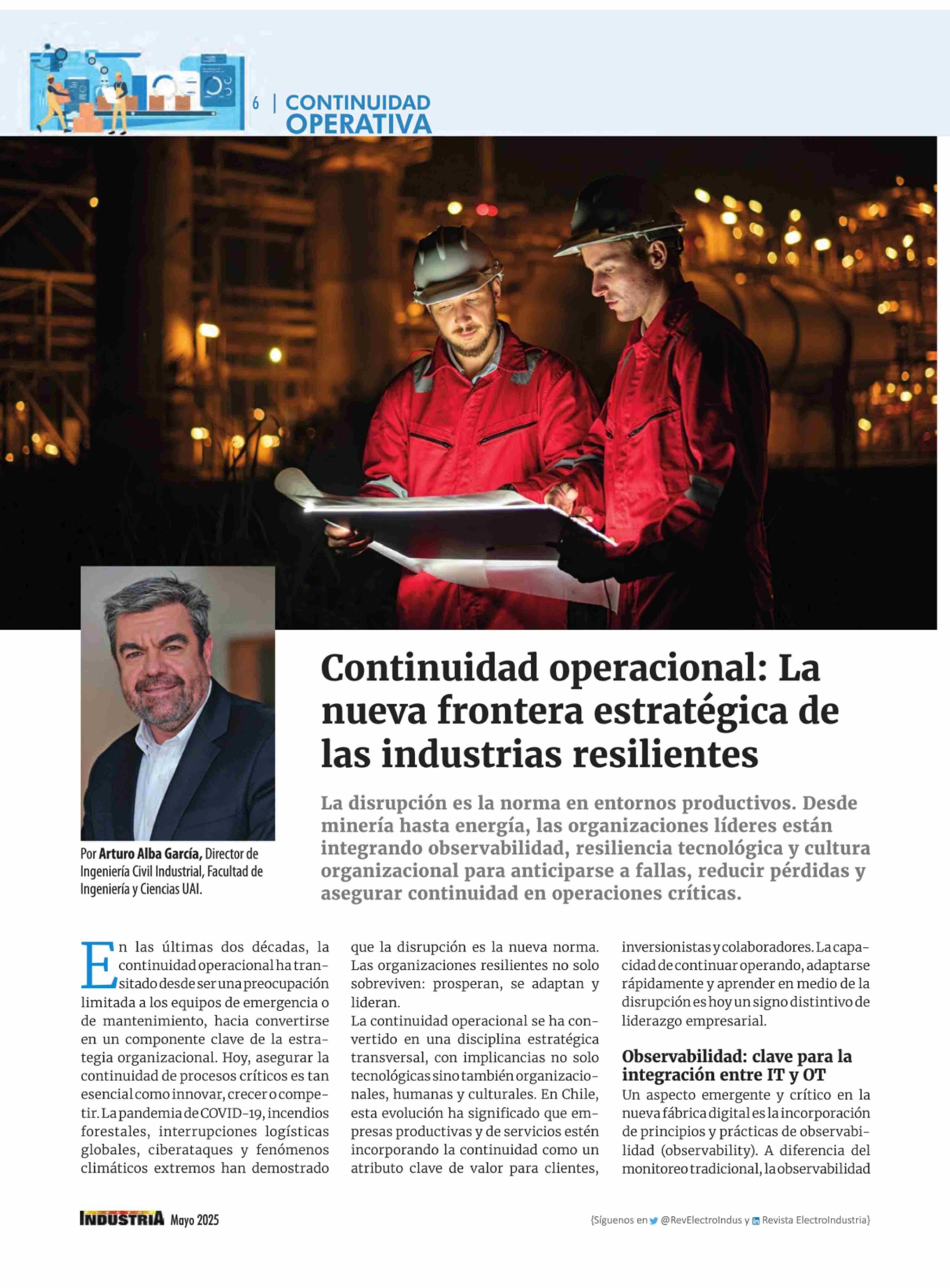Continuidad operacional: La nueva frontera estratégica de las industrias resilientes 30-05-2025 Revista Electro Industria |