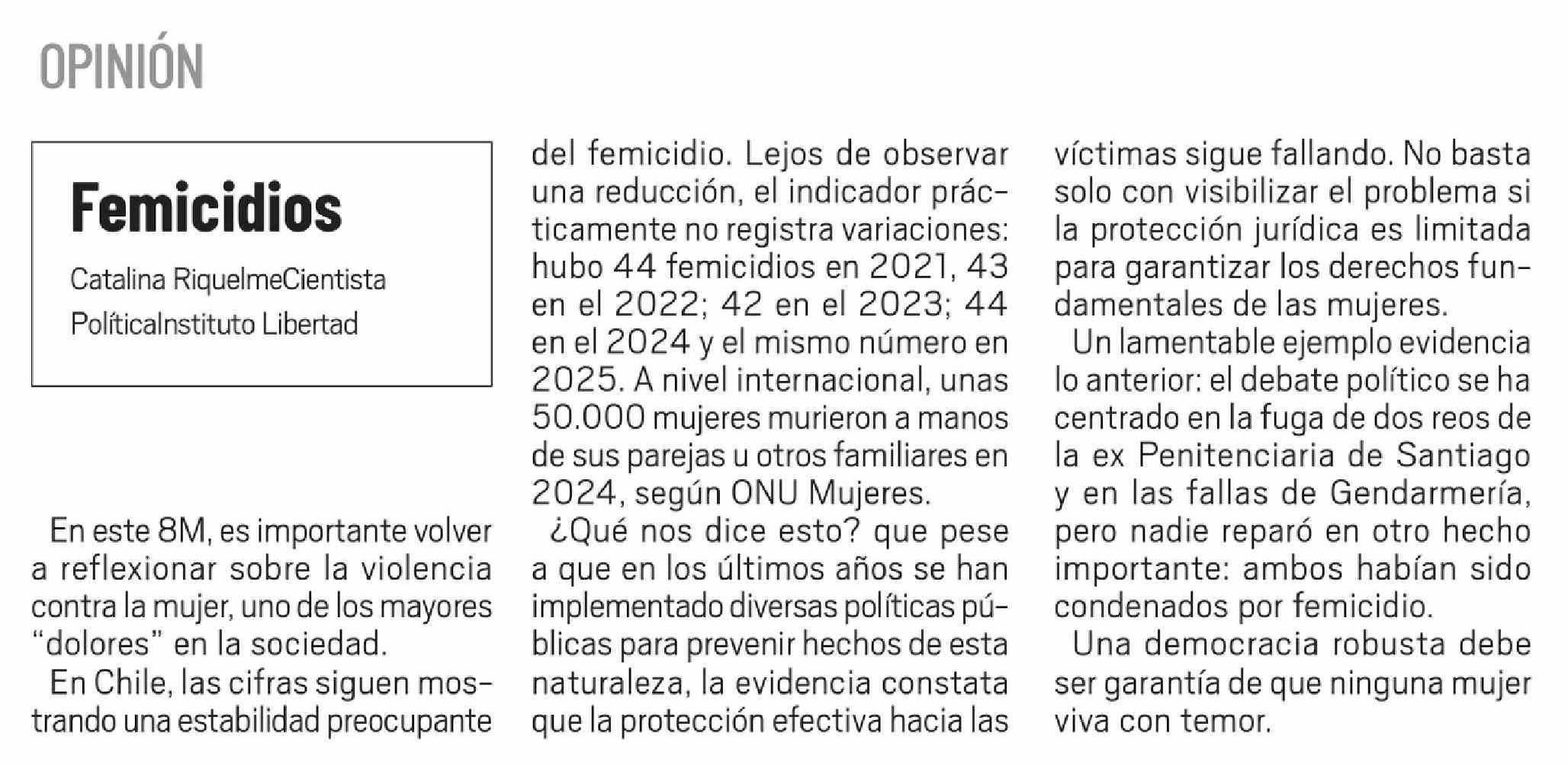 Columnas de Opinión: Femicidios 12-03-2026 El Día |
