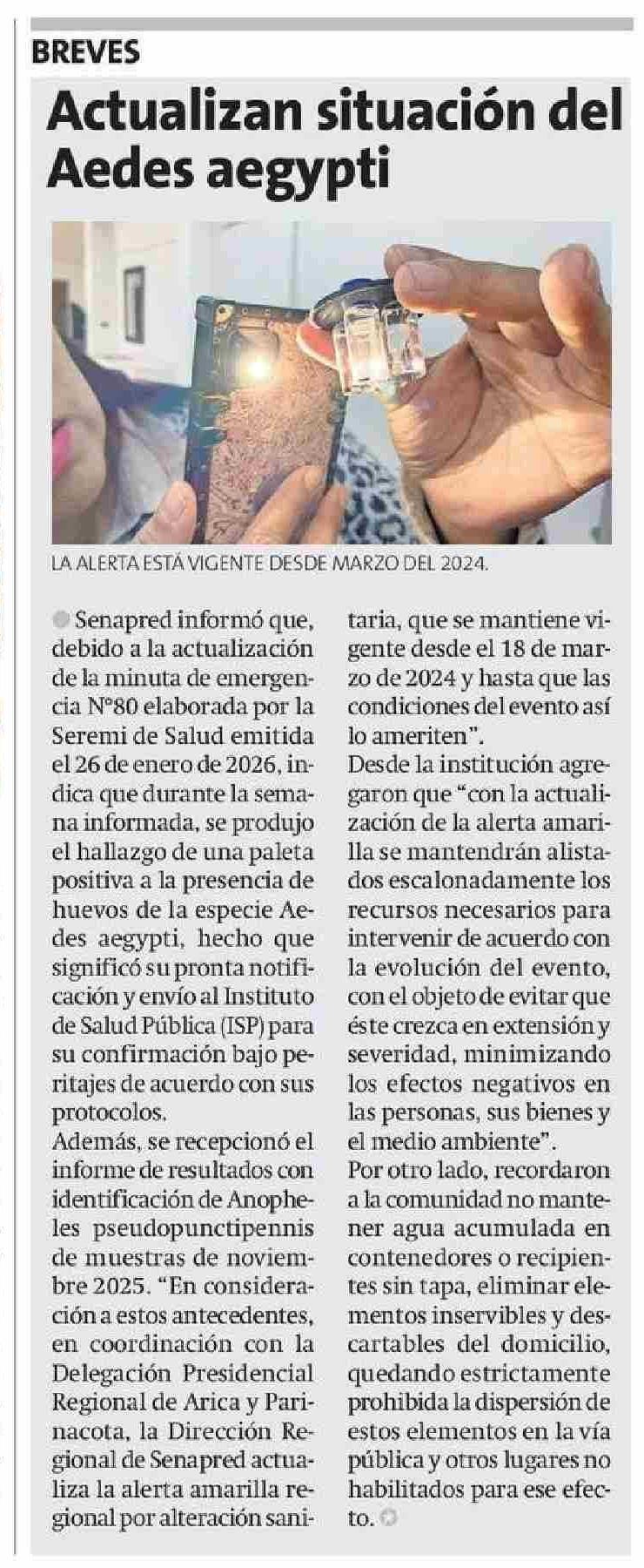 Fecha: 28-01-2026 Sector: Noticia general Región: Región de Arica y Parinacota