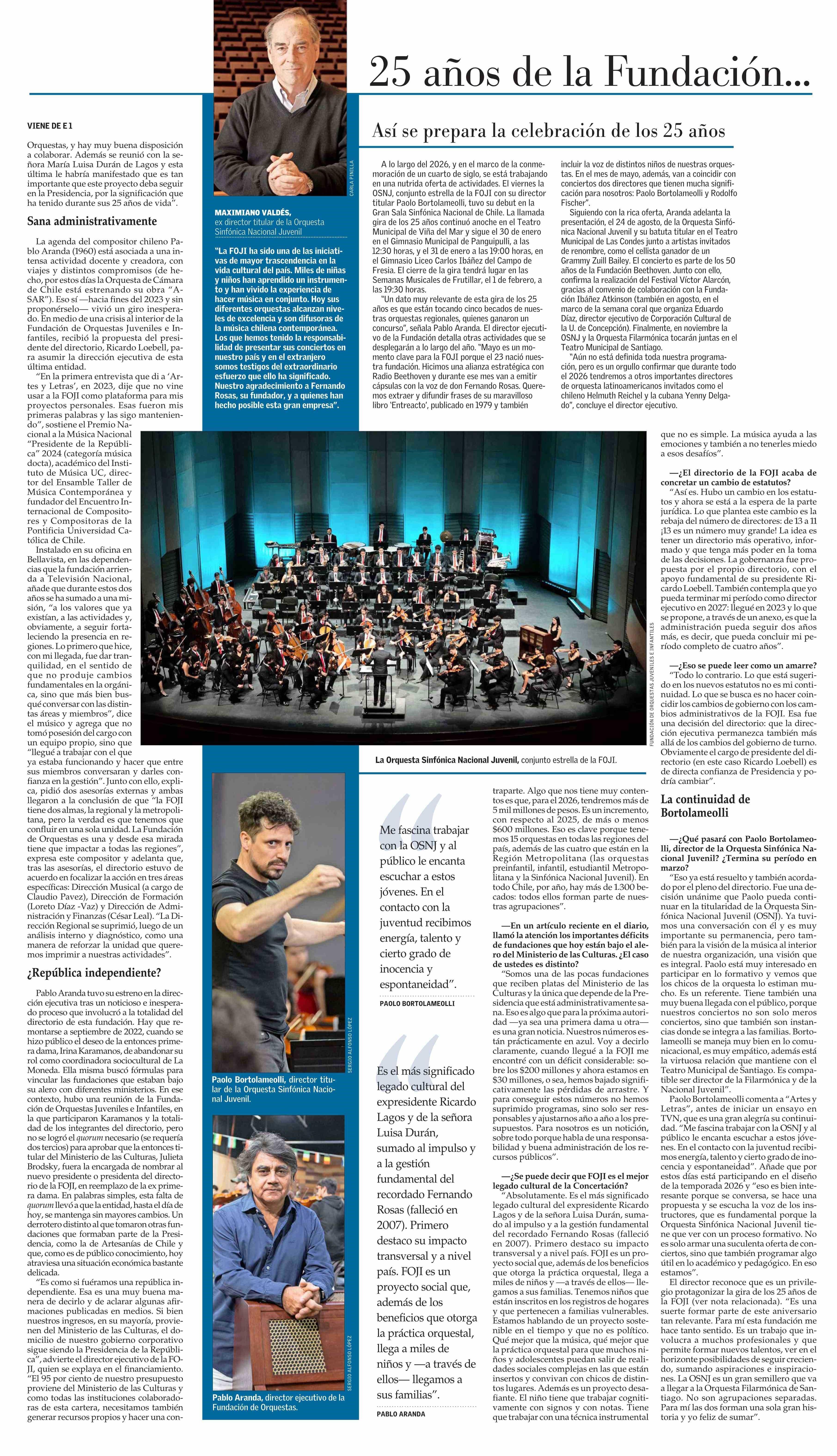 25 AÑOS DE LA FUNDACION DE ORQUESTAS JUVENILES E INFANTILES, UN LEGADO DE GRAN TRASCENDENCIA CULTURAL EN TODO EL PAÍS 25-01-2026 El Mercurio |