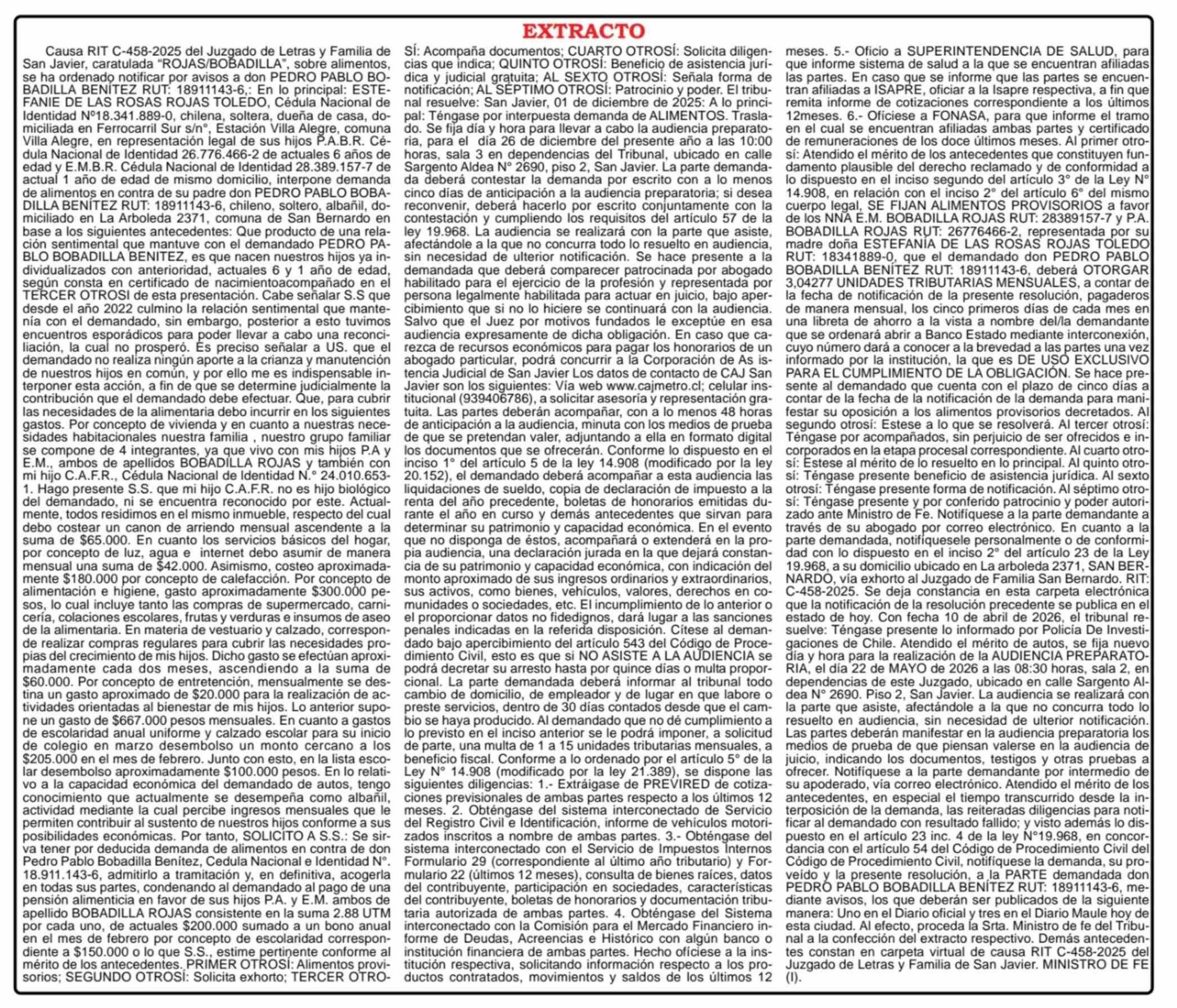 Extractos: PUBLICIDAD 25-04-2026 Maule Hoy |