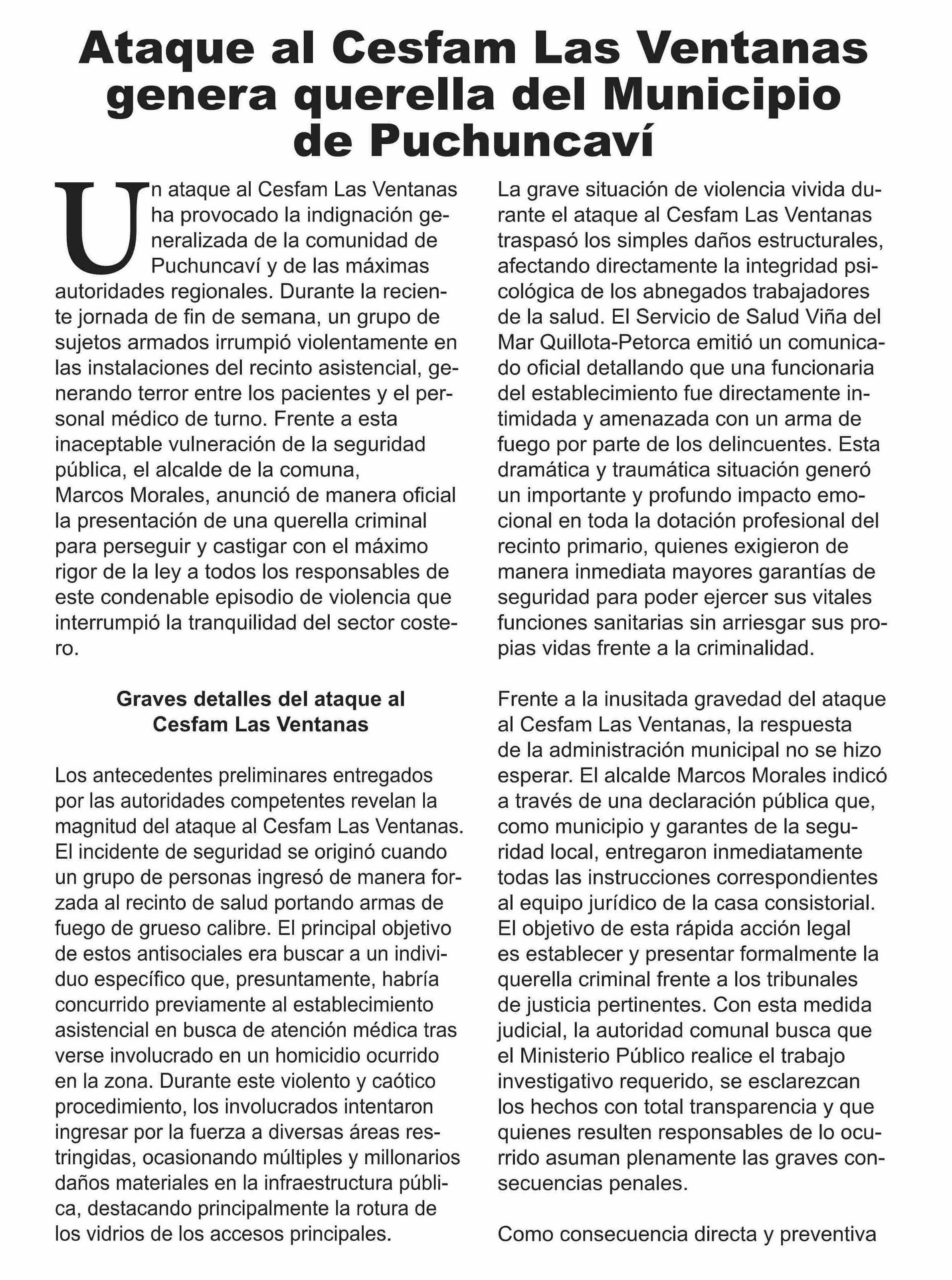 | Título: | Ataque al Cesfam Las Ventanas genera querella del Municipio de Puchuncaví |