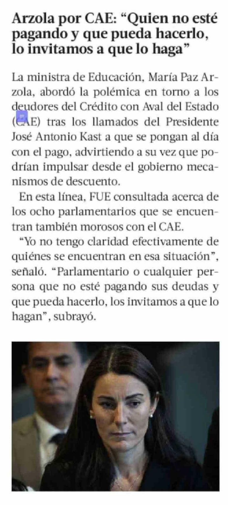Título: Arzola por CAE: "Quien no esté pagando y que pueda hacerlo, lo invitamos a que lo haga"