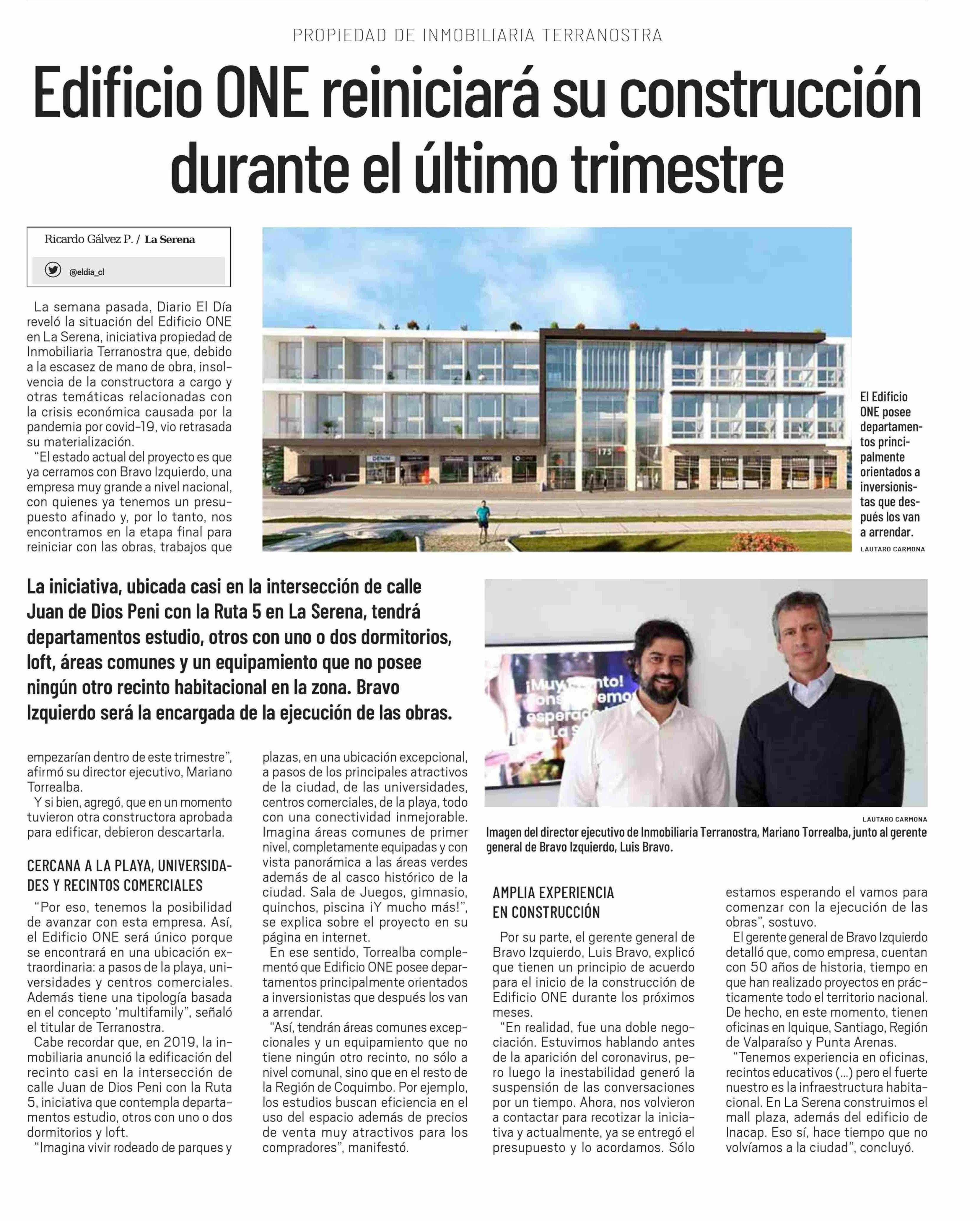 Edificio ONE reiniciaráa su construcción durante el último trimestre 01-09-2023 El Día |