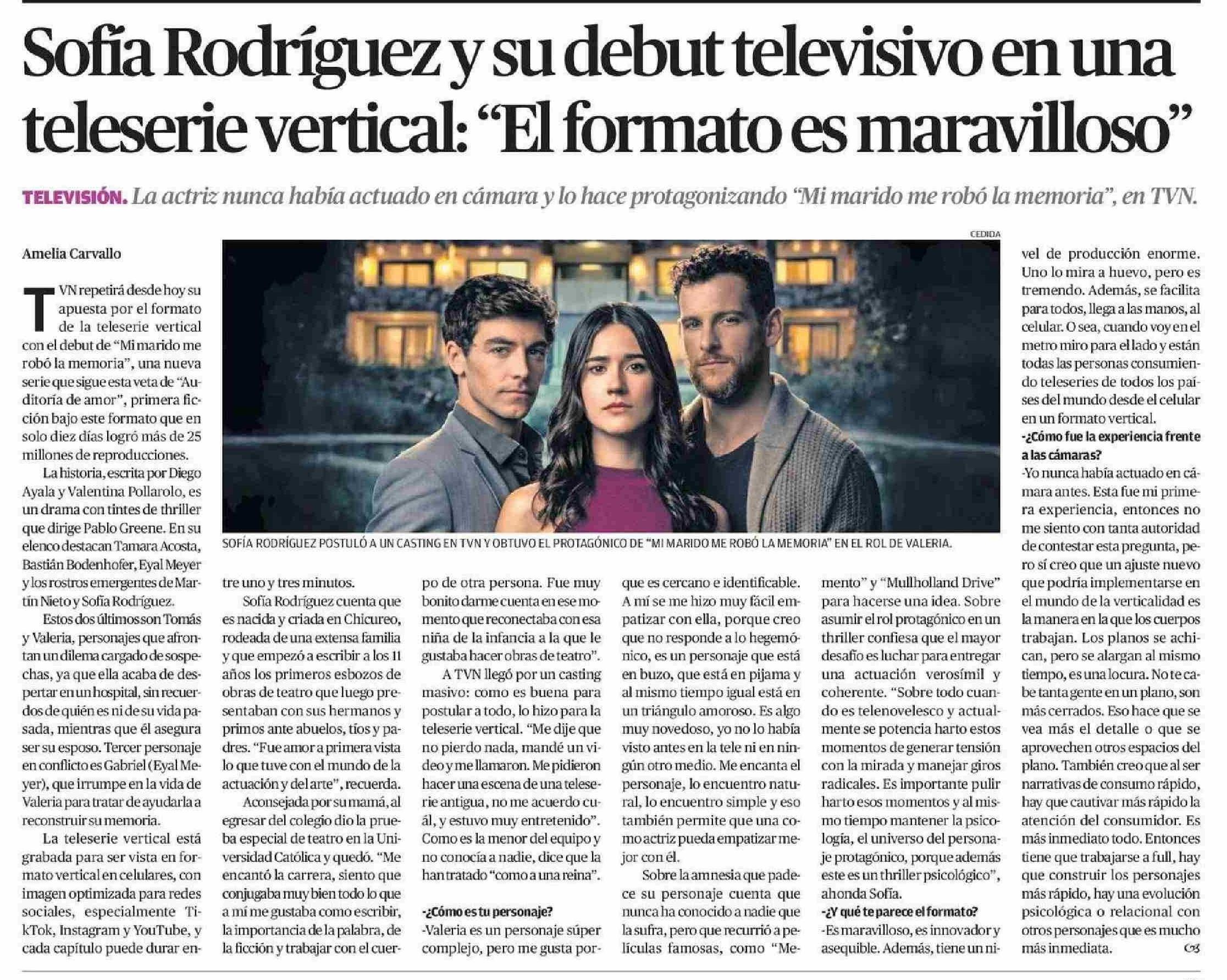 | Título: | Sofia Rodríguez y su debut televisivo en una teleserie vertical: "El formato es maravilloso" |