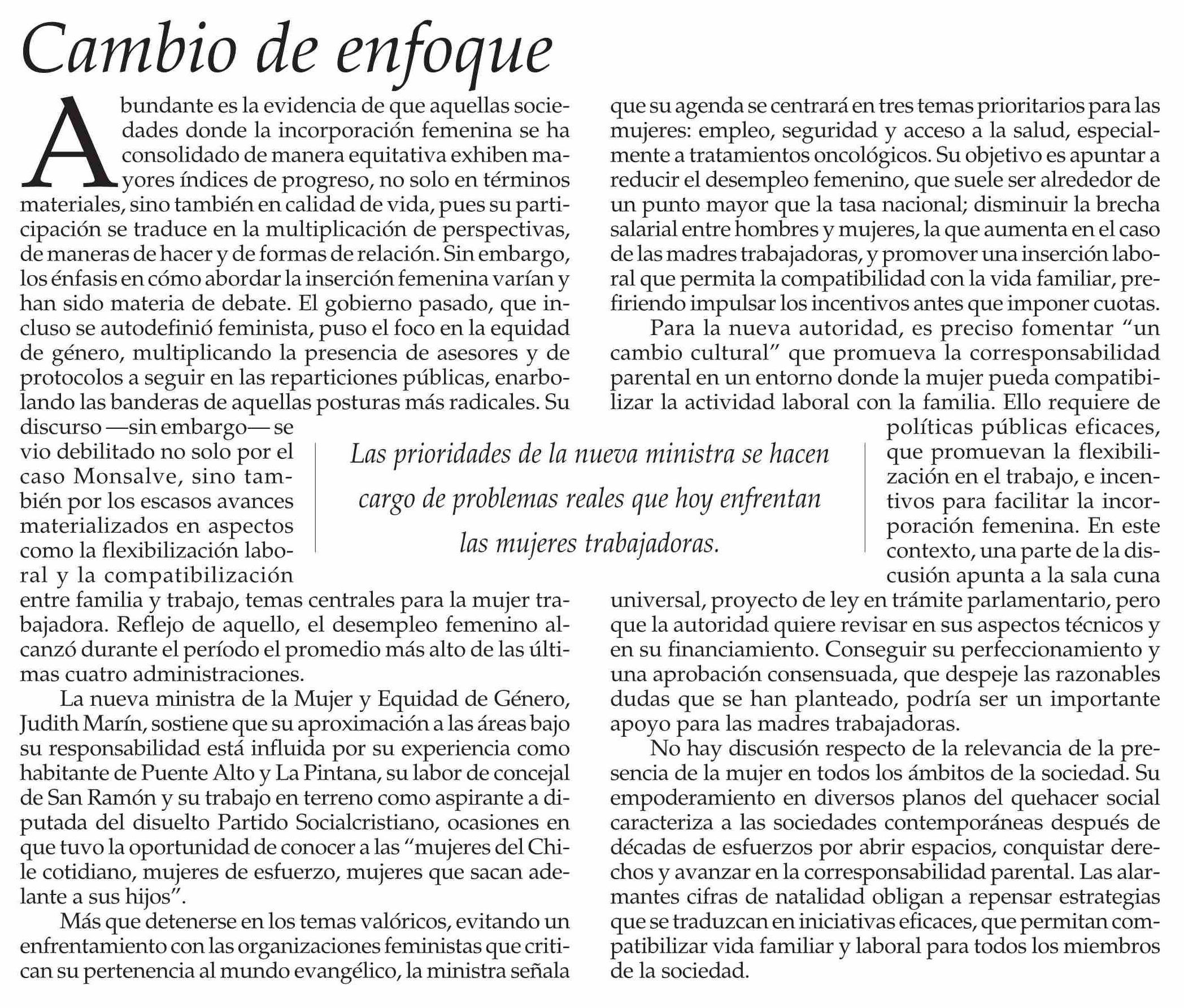 Editorial: Cambio de enfoque 19-03-2026 El Mercurio |
